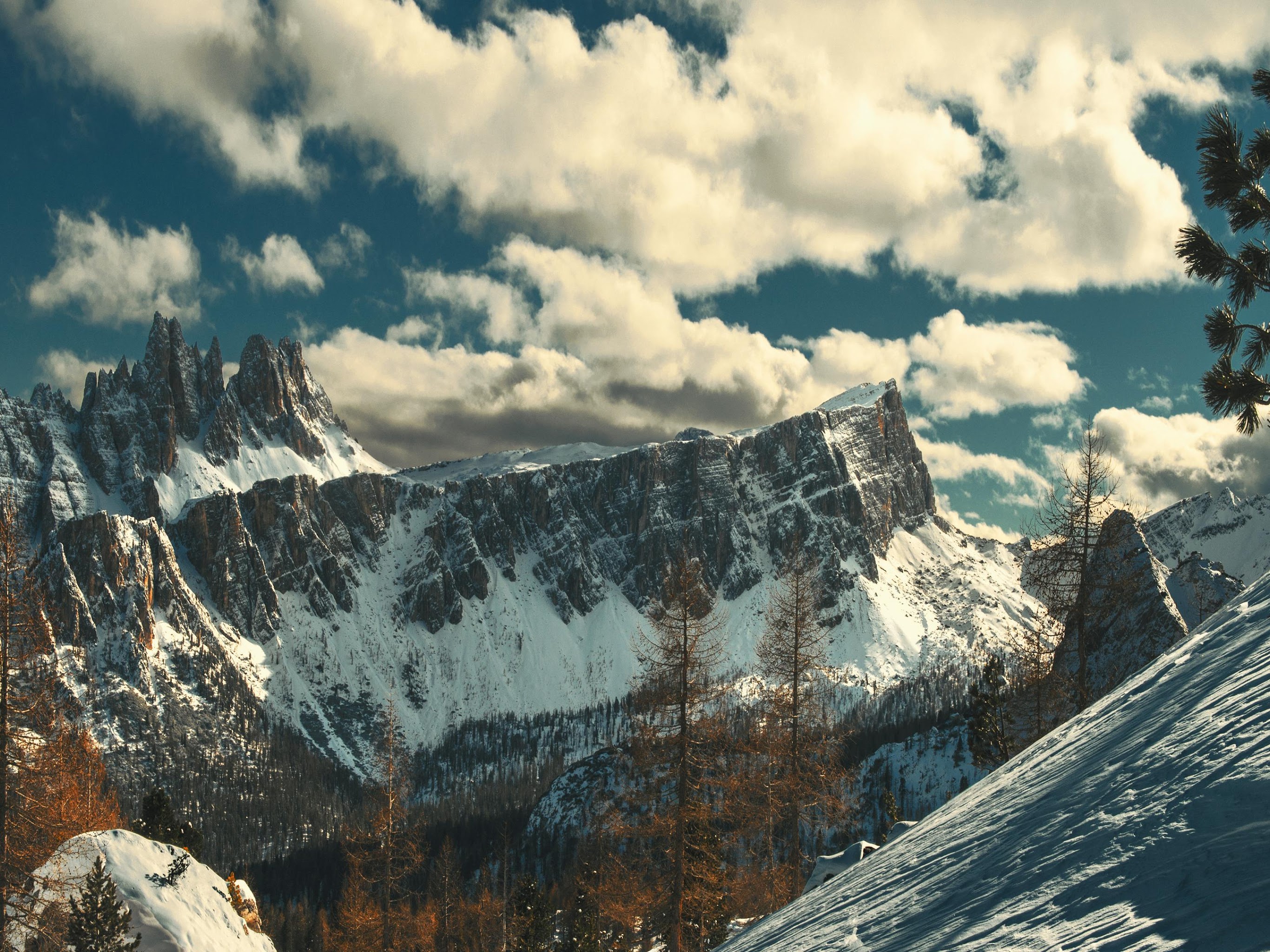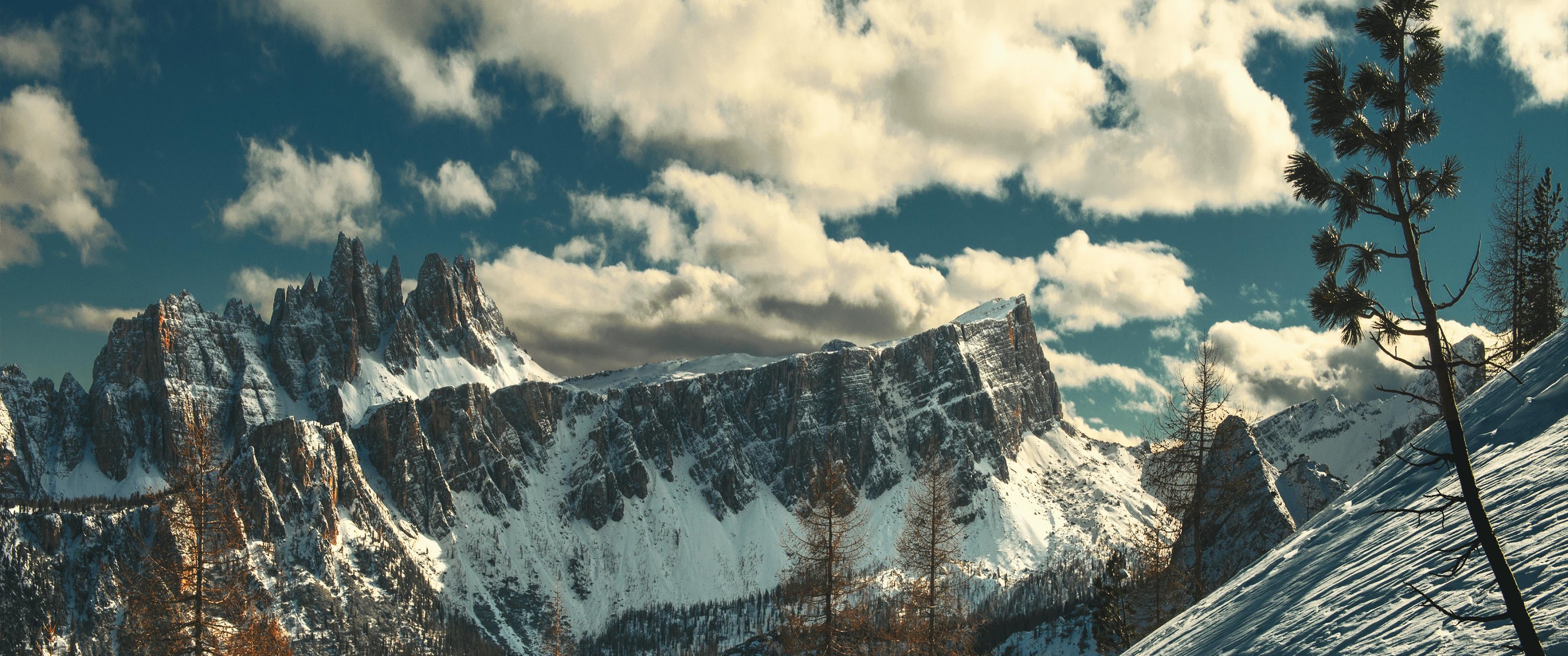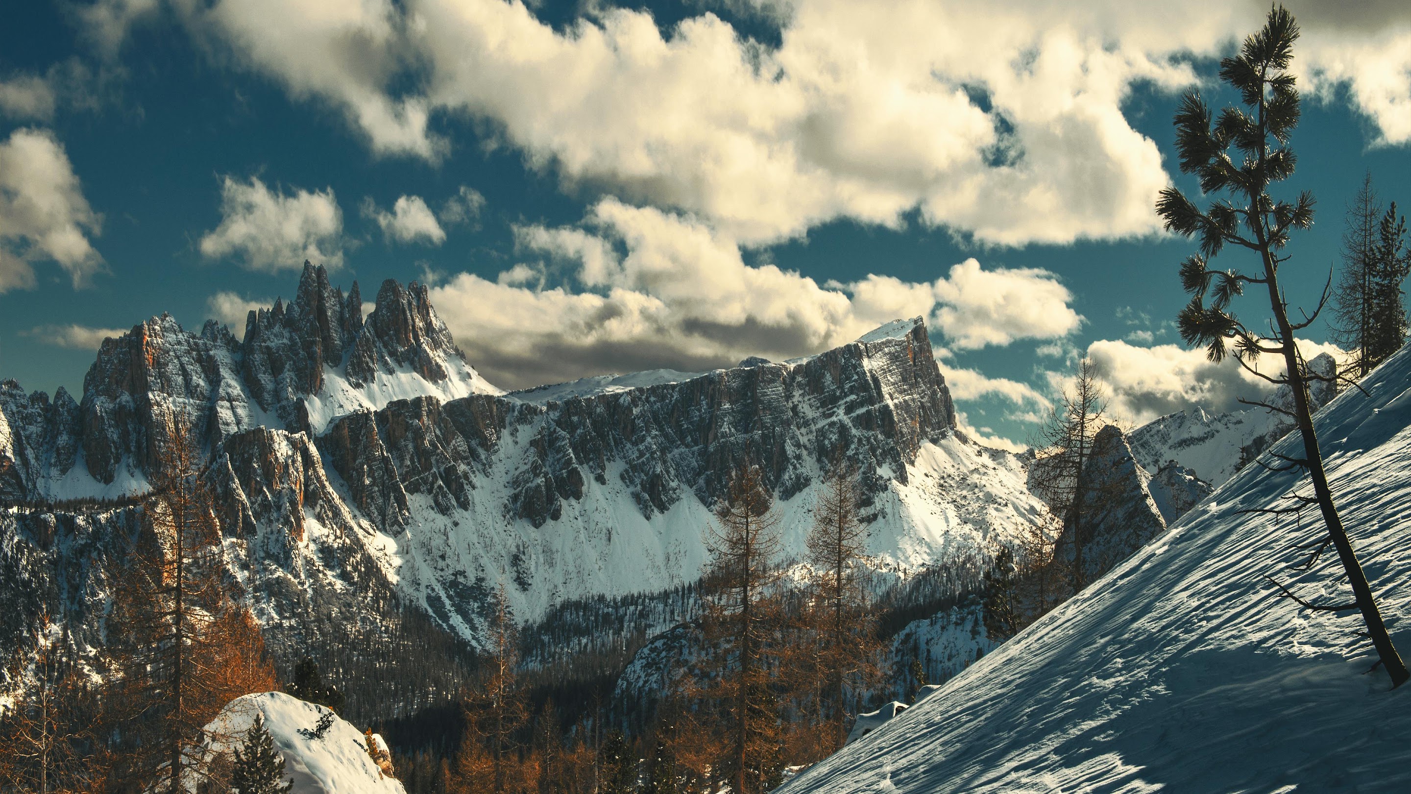 Dramatic Rocky Peaks And Snow 4K Desktop Wallpaper