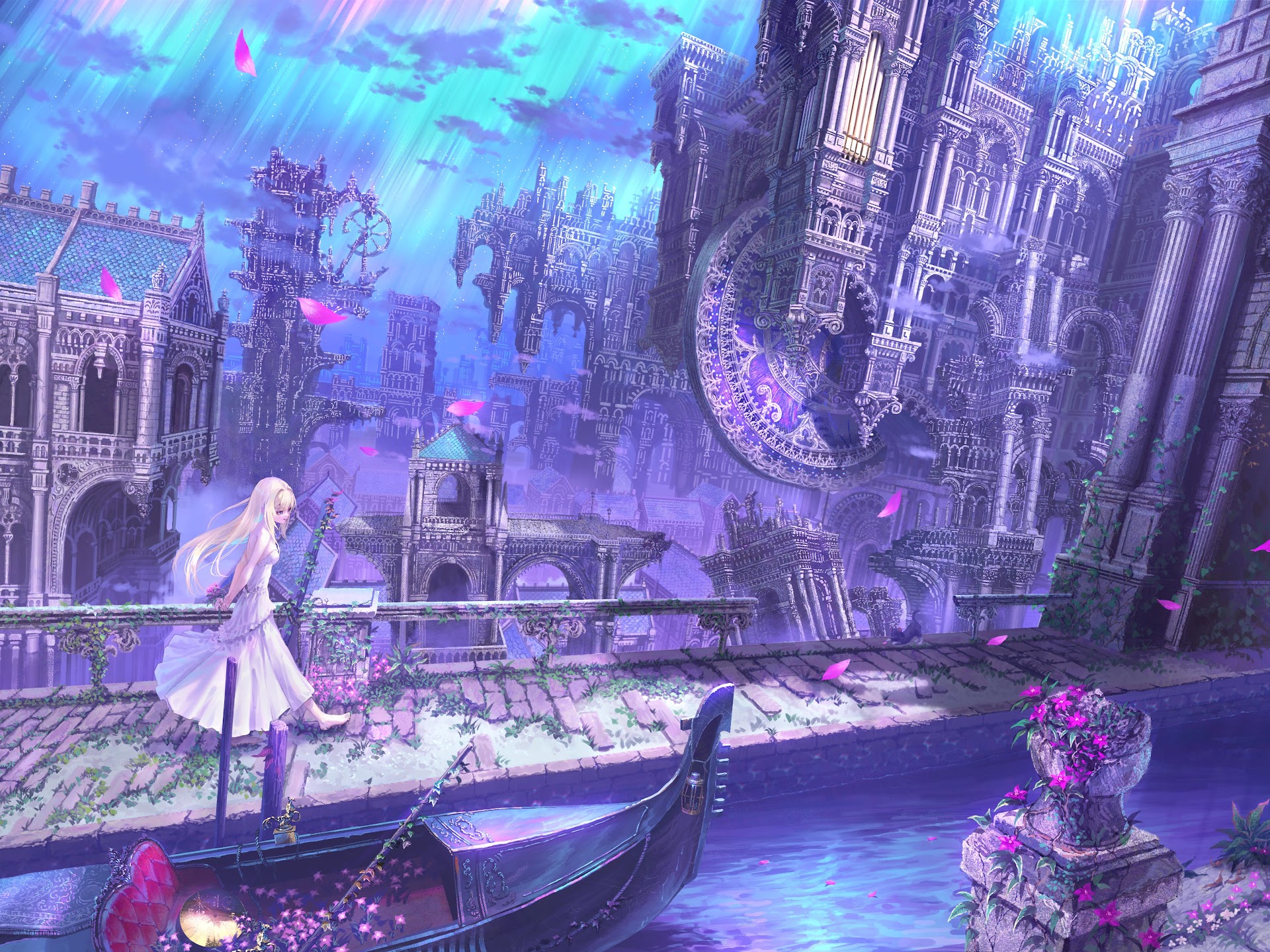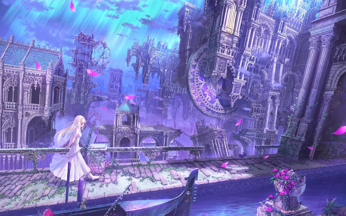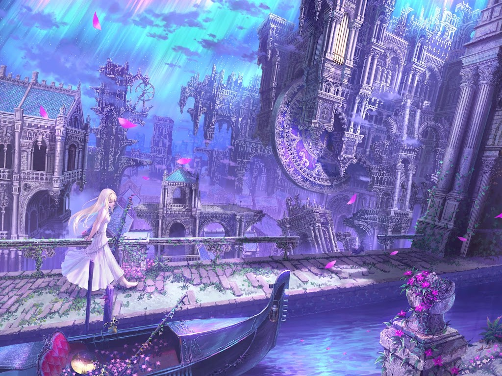 Fantasy Landscape, Anime Art, Venice Inspired, Purple Aesthetic 5K Desktop Wallpaper