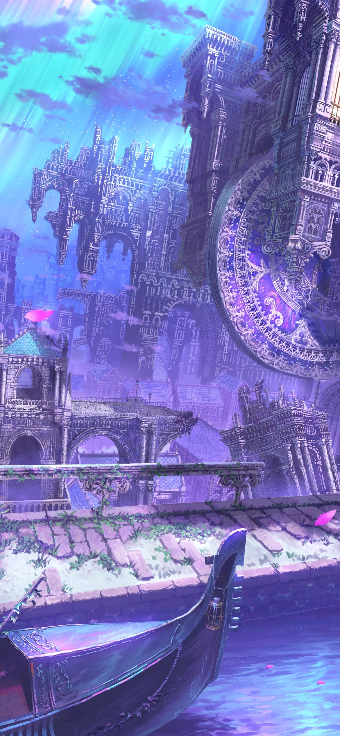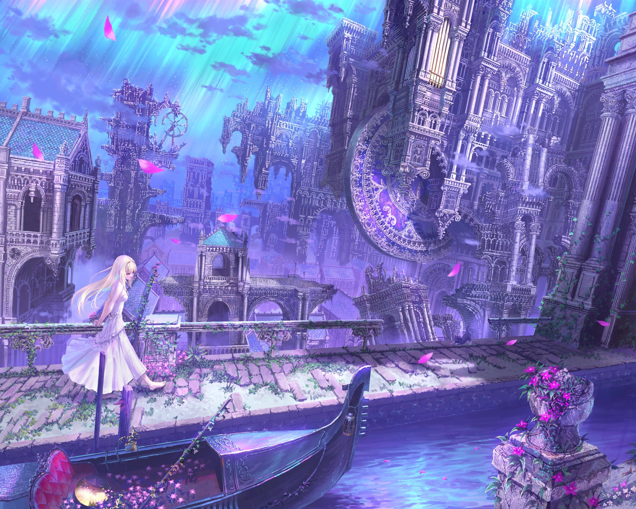 Fantasy Landscape, Anime Art, Venice Inspired, Purple Aesthetic 5K Wallpaper Background (5788x4093)