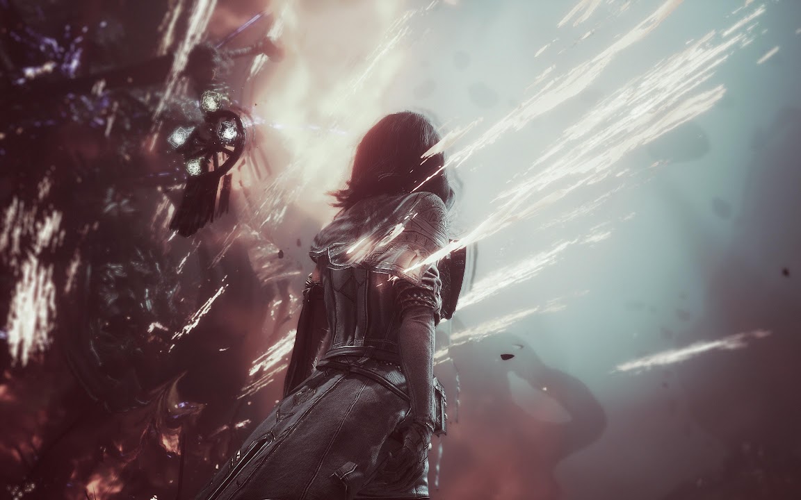 Female Warrior Facing Cosmic Storm 4K Desktop Wallpaper