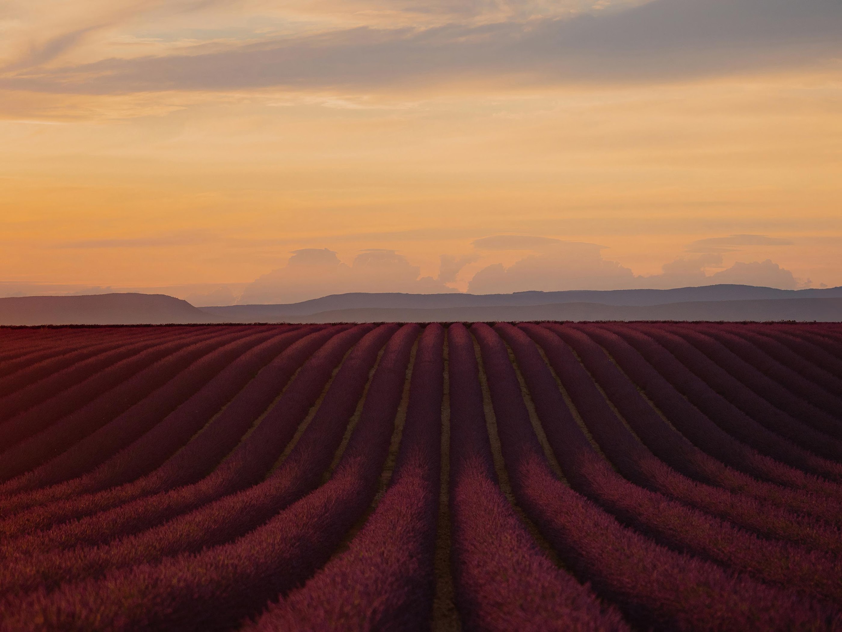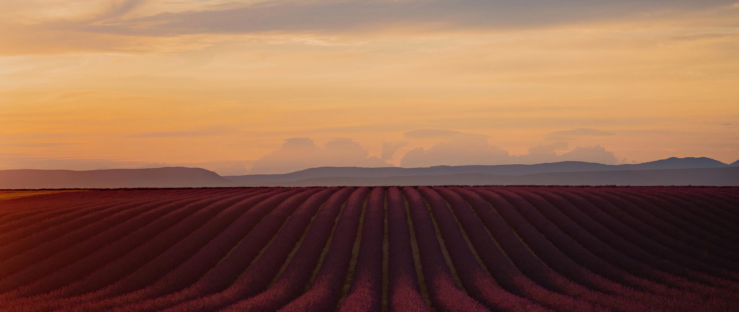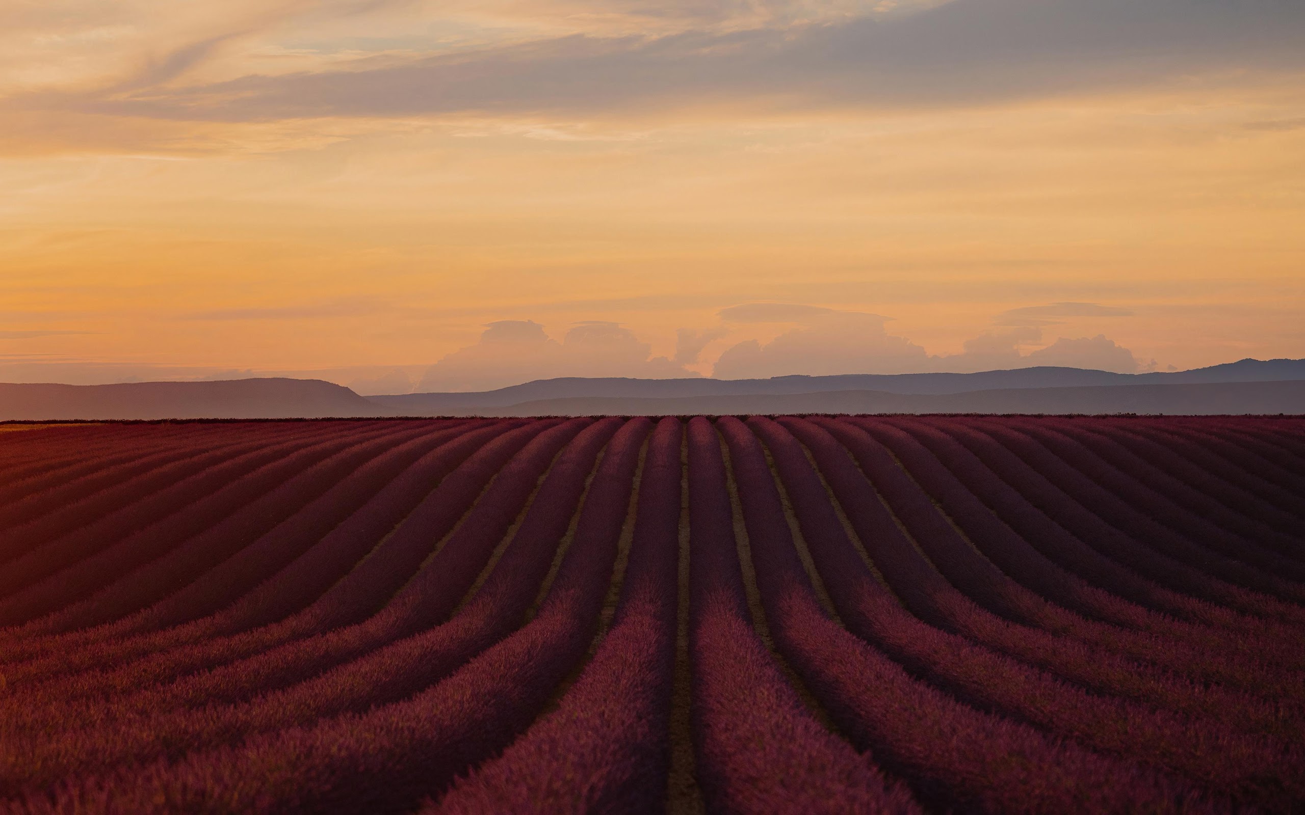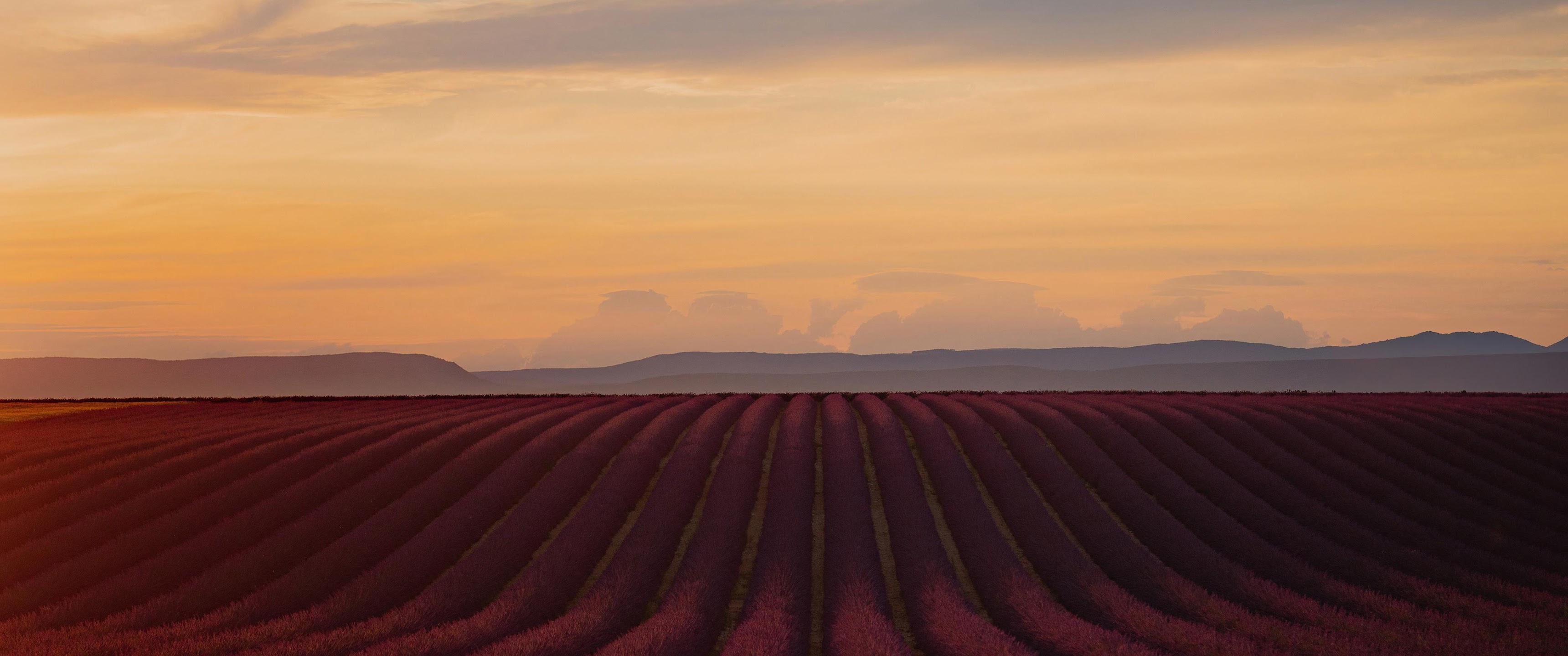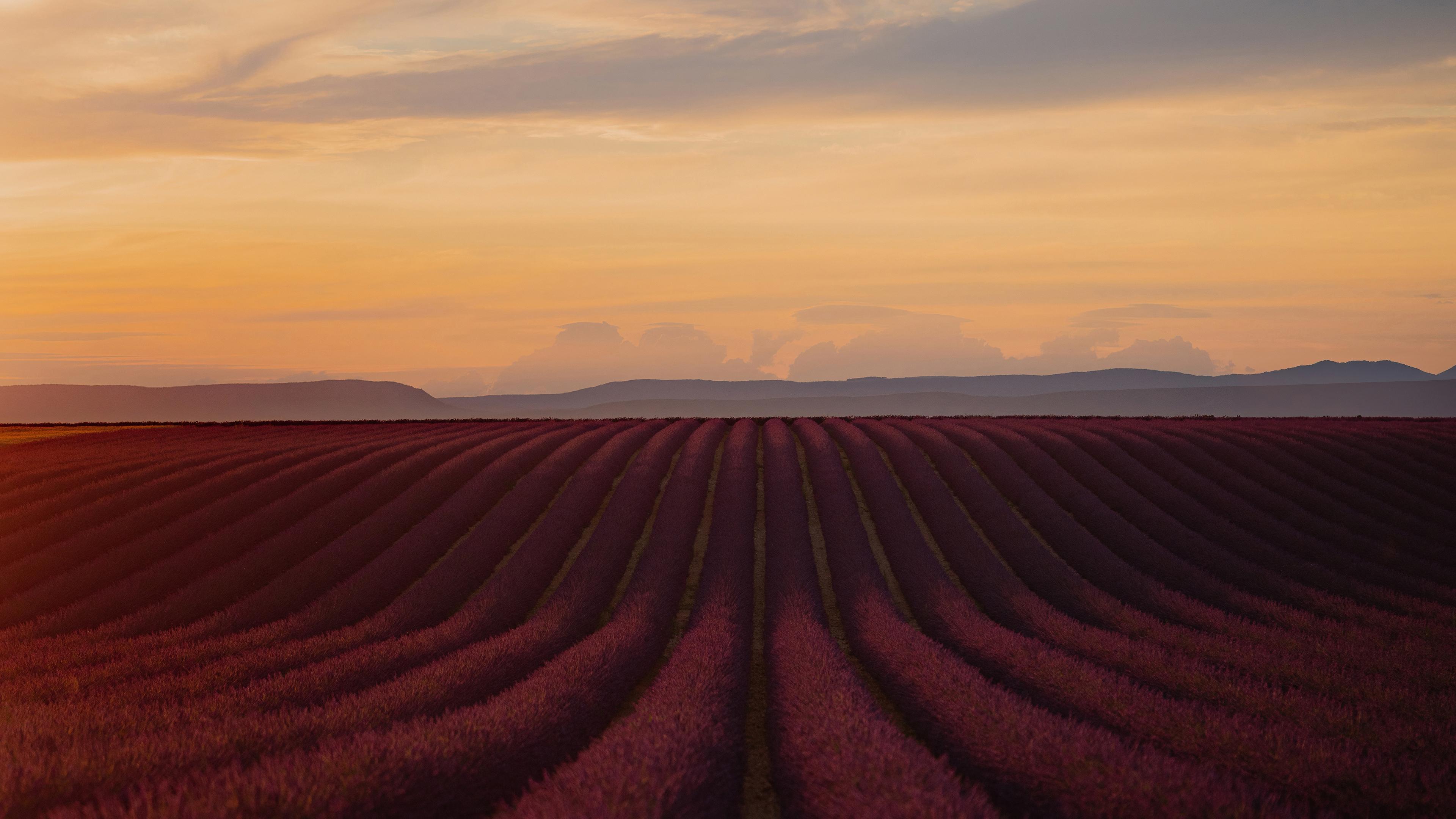 Lavender Field, Sunset Landscape, Provence, Nature Scenery 4K Desktop and Mobile Wallpaper Background with a maximum resolution of 3840x2160 px.