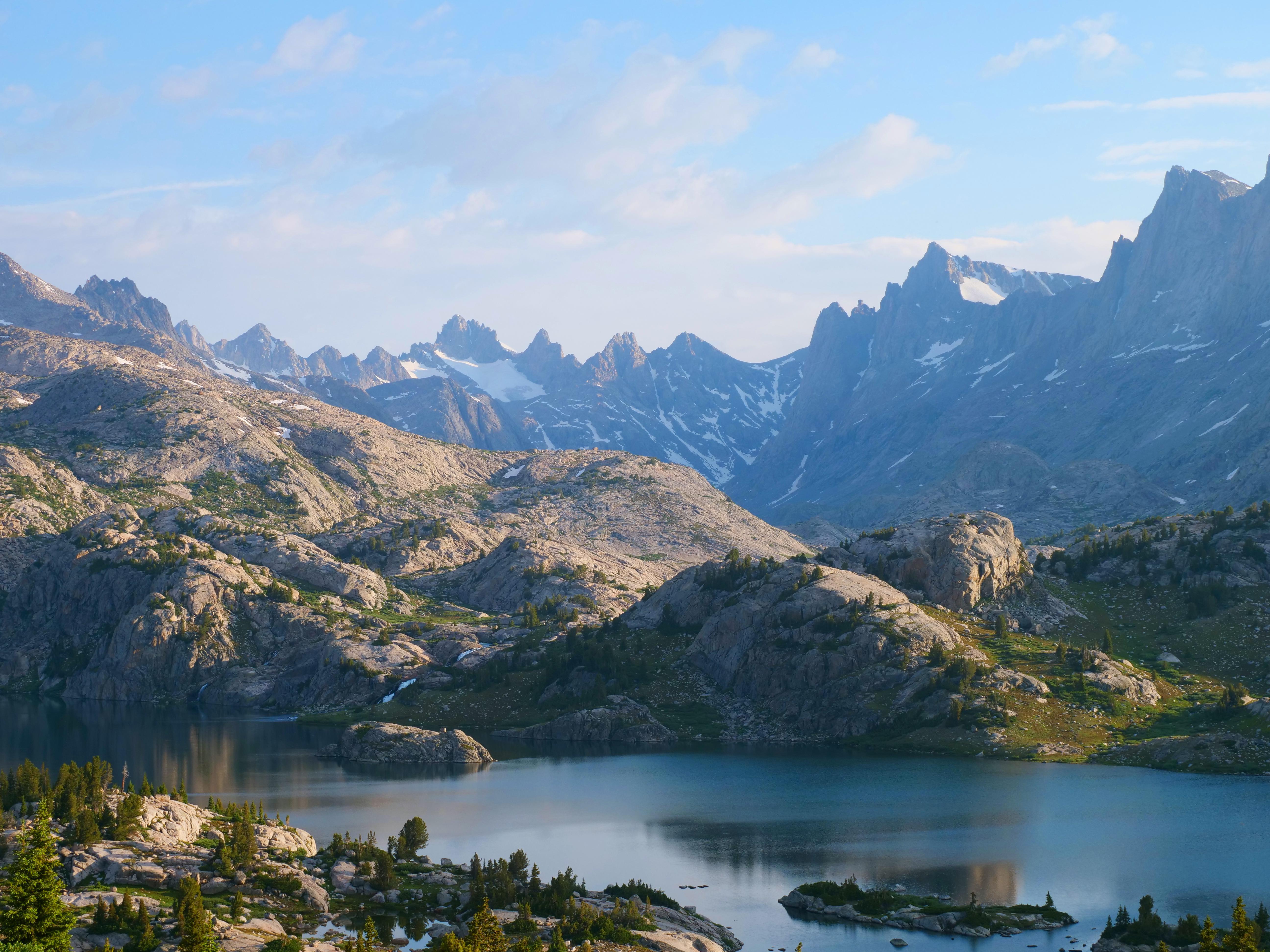 Mountain Lake, Wyoming, Wind River Range, Alpine Landscape 5K Desktop and Mobile Wallpaper Background with a maximum resolution of 5184x3888 px.