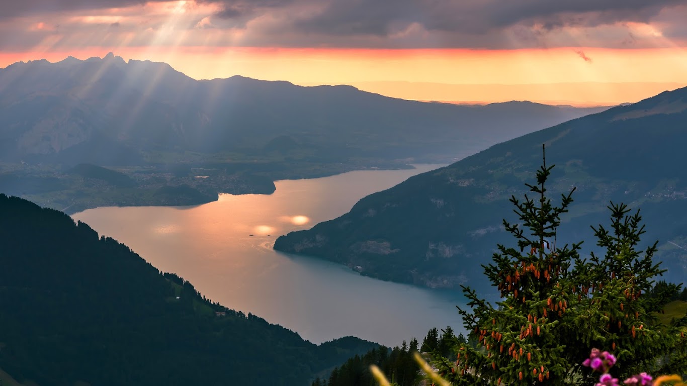 Mountain Landscape, Sunset View, Alpine Lake, Nature Photography 5K Desktop Wallpaper