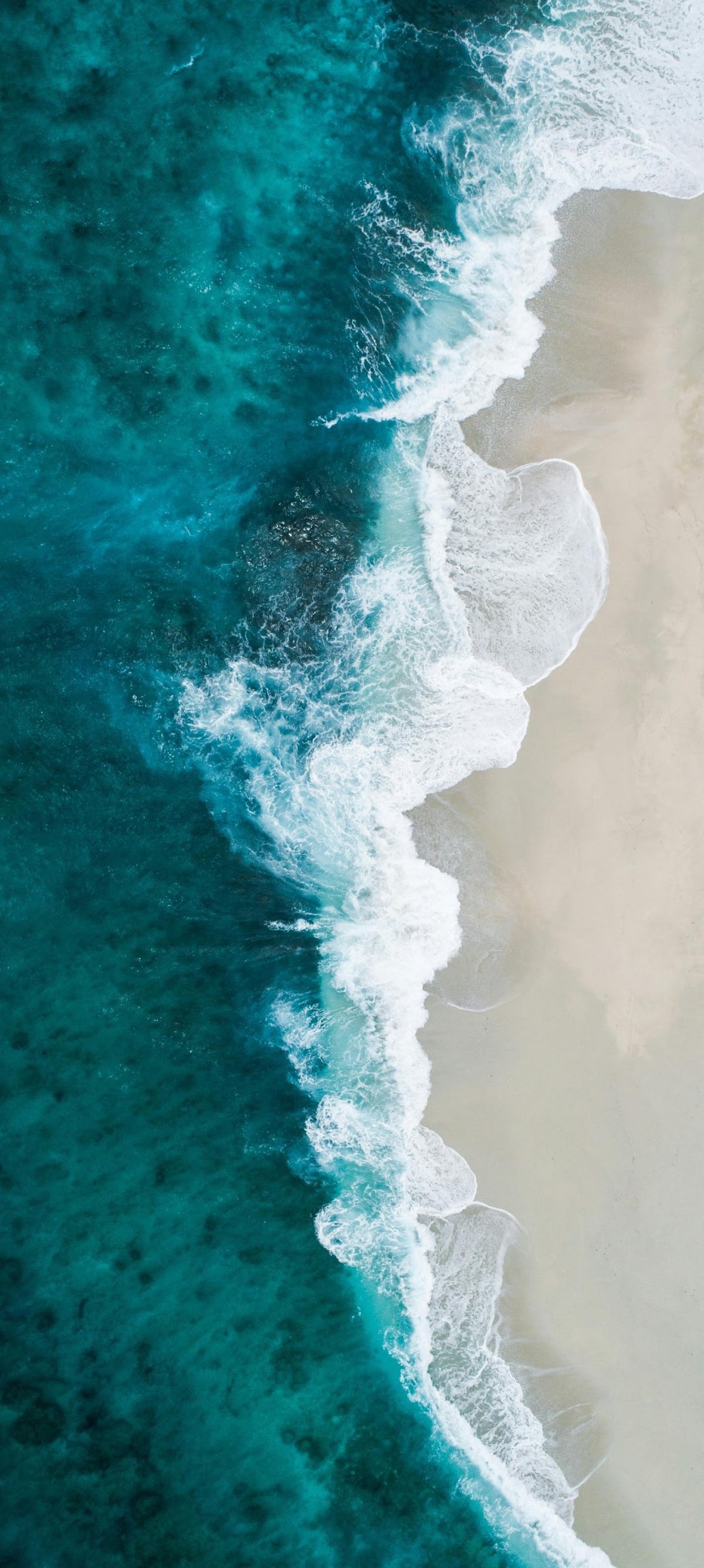 Ocean Surf On Sandy Shore - Aerial Nature Photography Full HD iPhone Wallpaper (1426x3172)