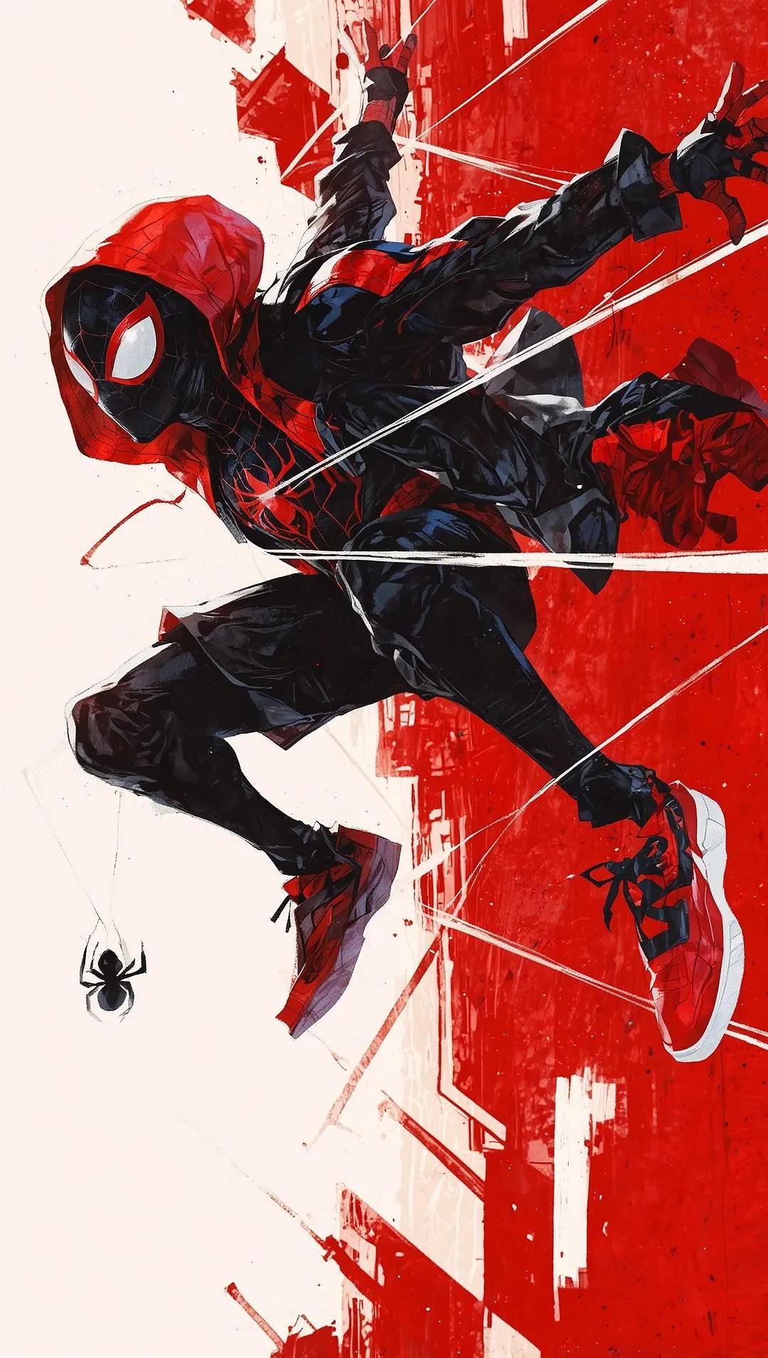 Spider-Man, Miles Morales, Spider-Verse, Comic Illustration iPhone Wallpaper