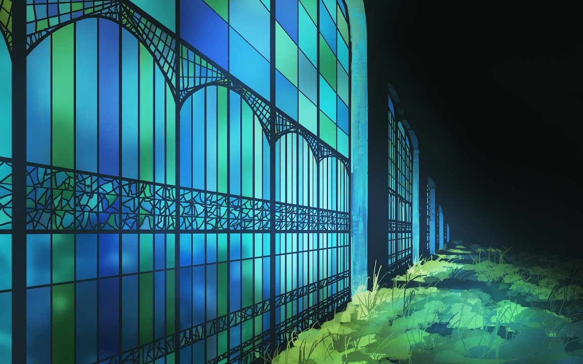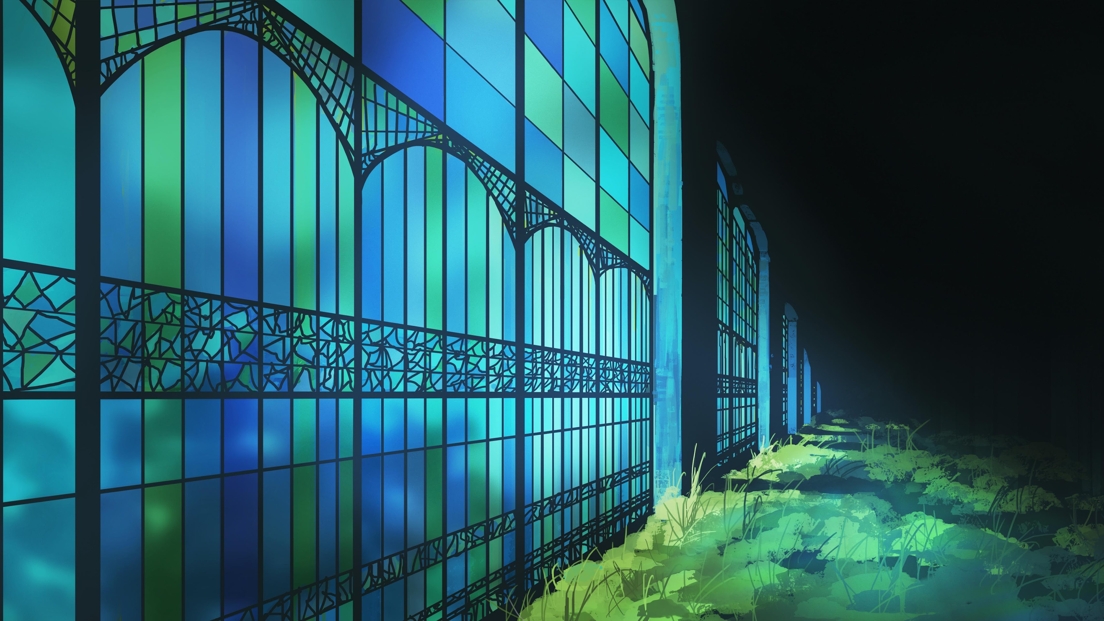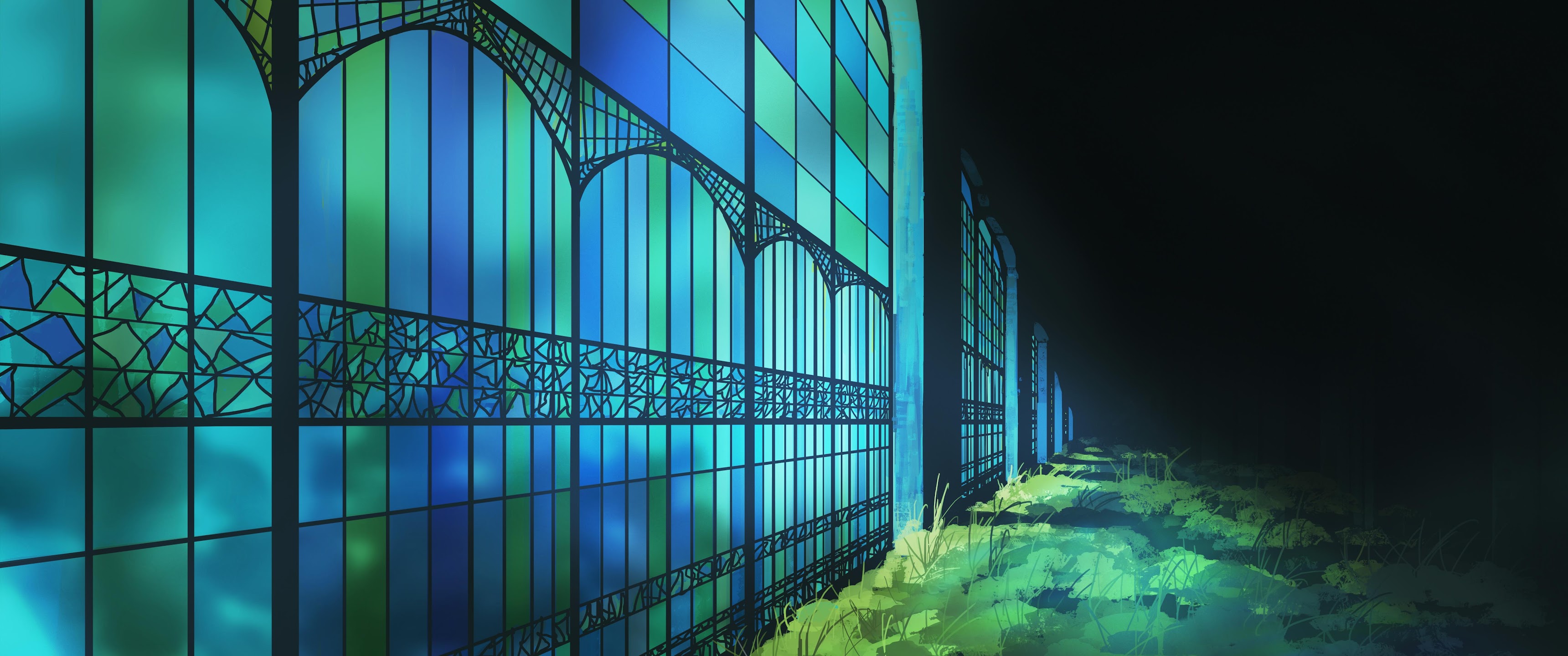 Stained Glass, Illustration, Greenhouse, Garden 4K Ultrawide Desktop and Mobile Wallpaper Background with a maximum resolution of 5640x2400 px.