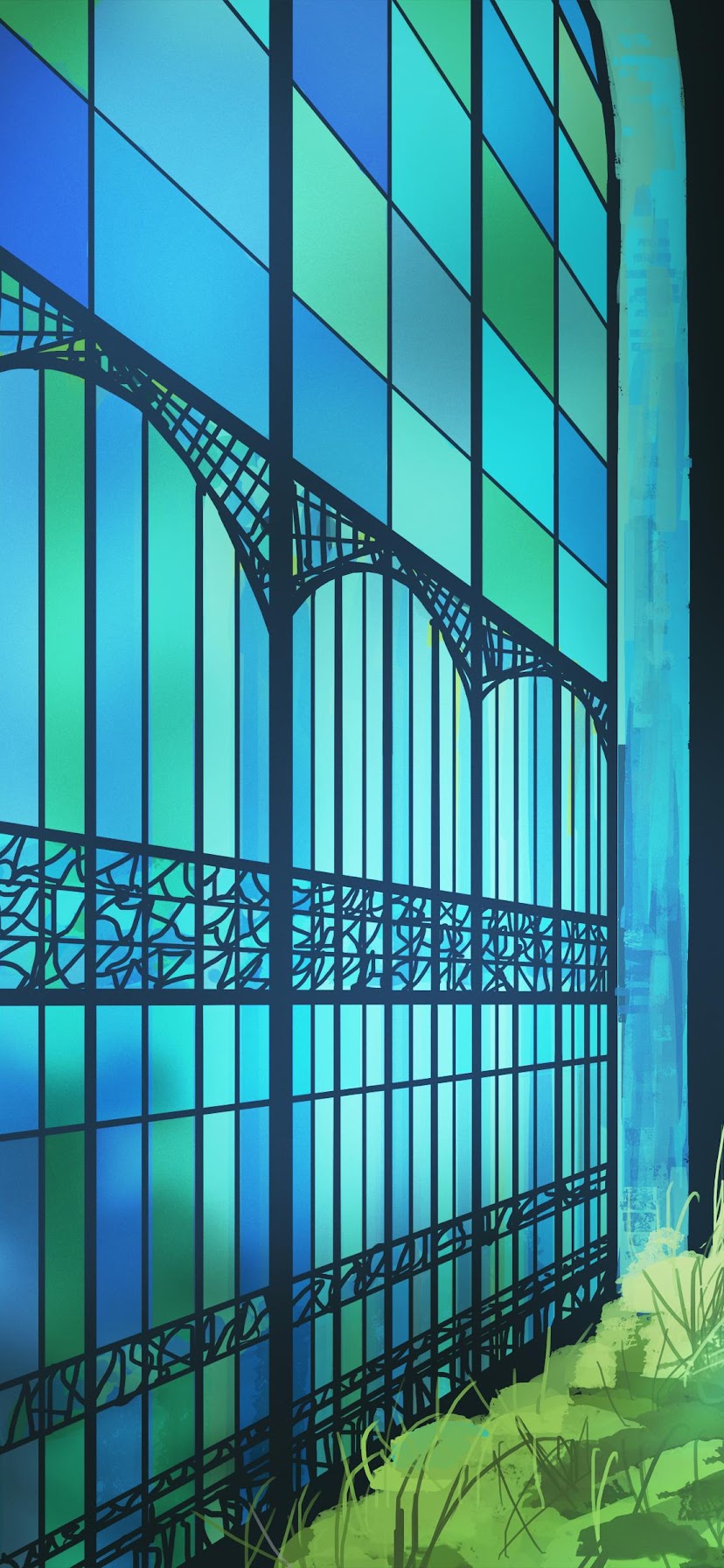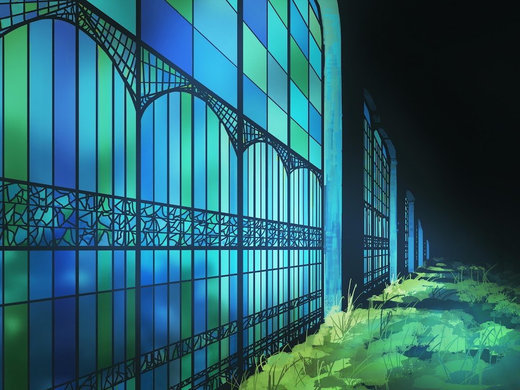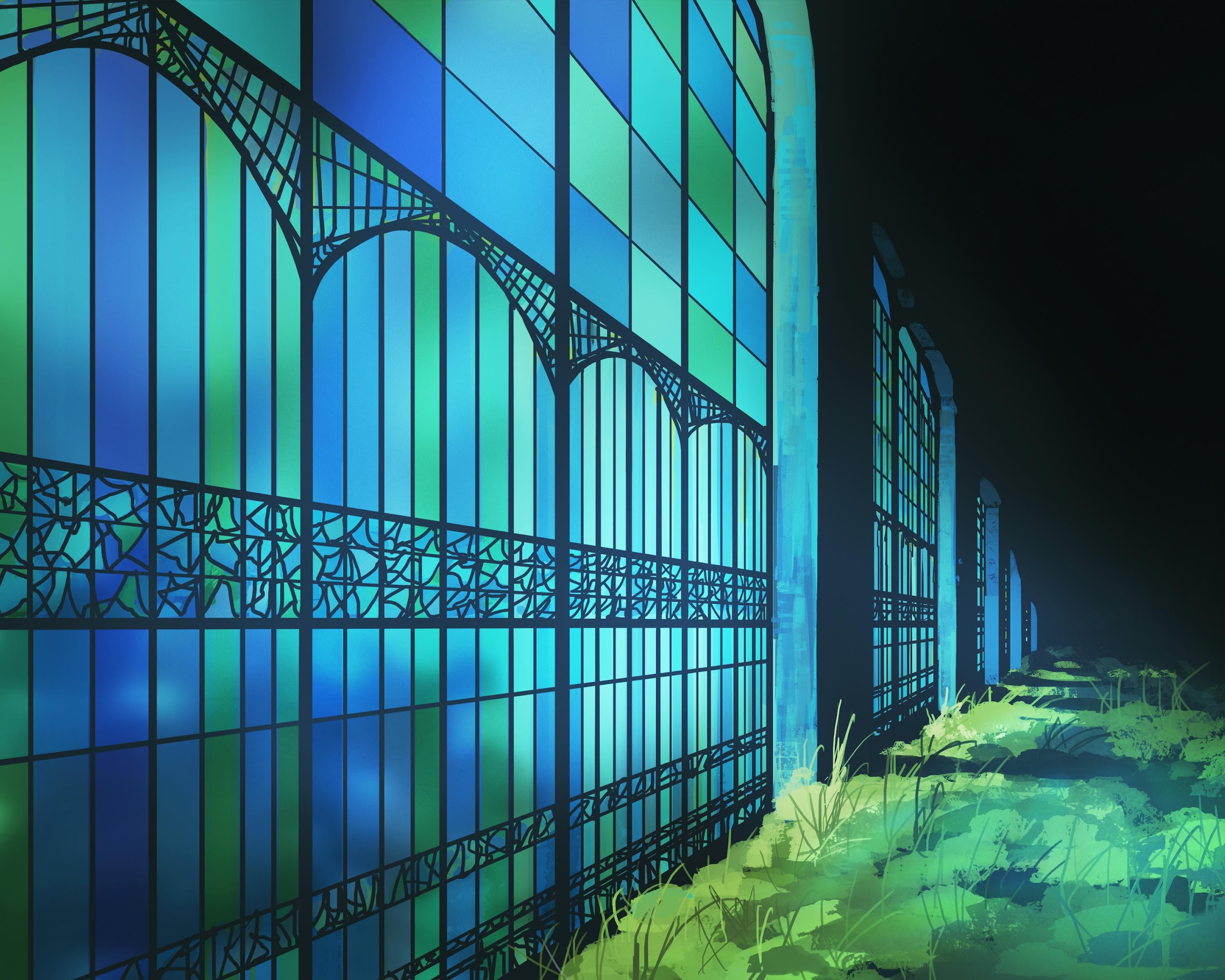 Stained Glass, Illustration, Greenhouse, Garden 4K Ultrawide Desktop and Mobile Wallpaper Background with a maximum resolution of 5640x2400 px.
