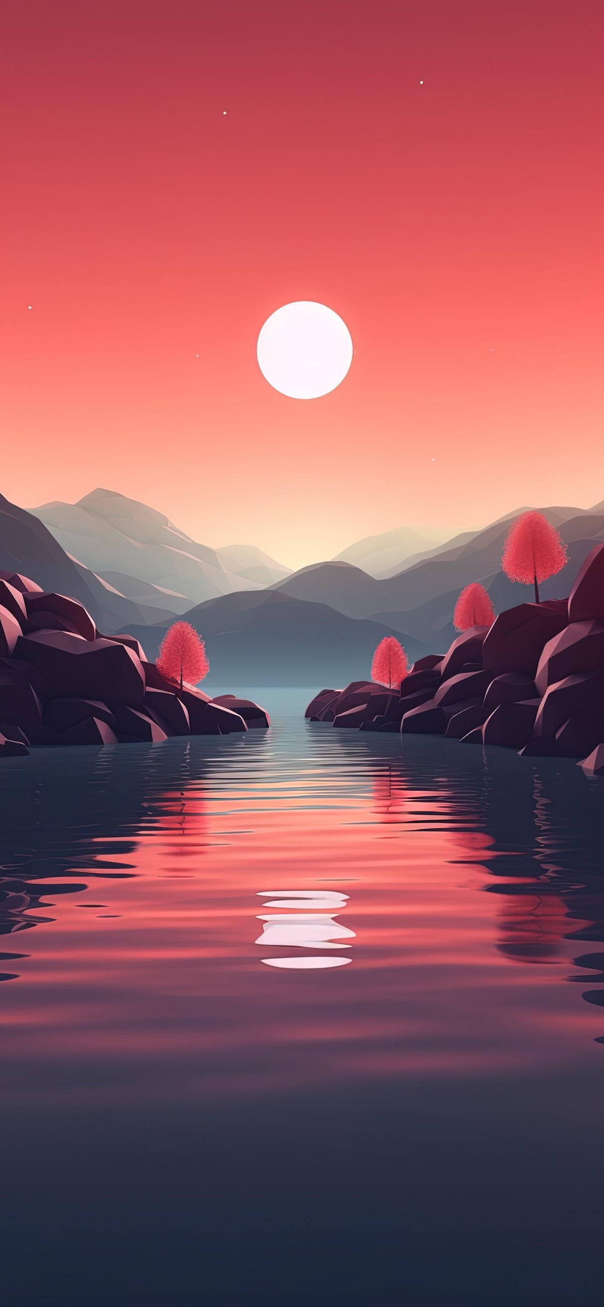 Sunset, Lake, Landscape, Minimalist Full HD iPhone Wallpaper Background with a maximum resolution of 1420x3072 px.