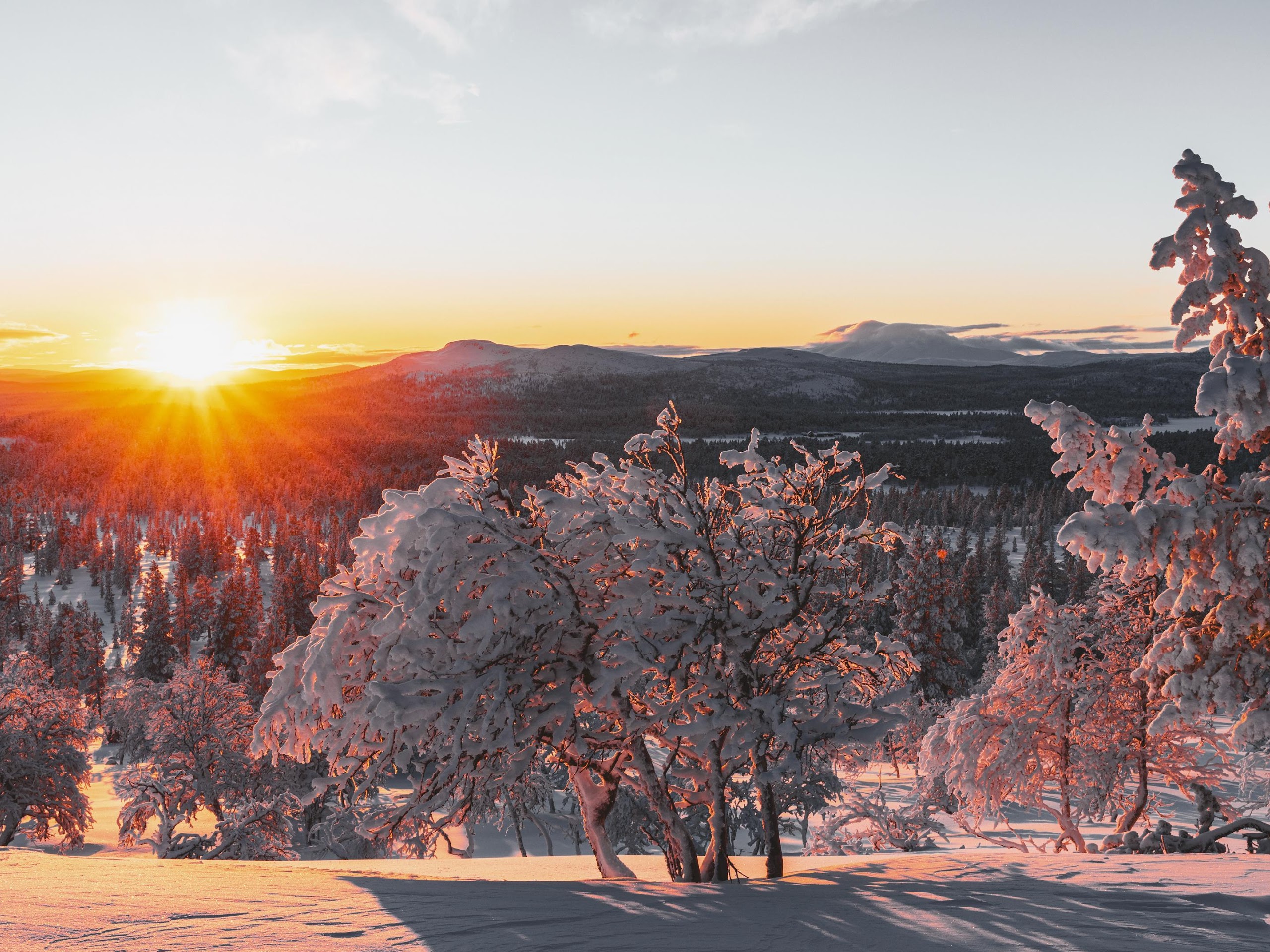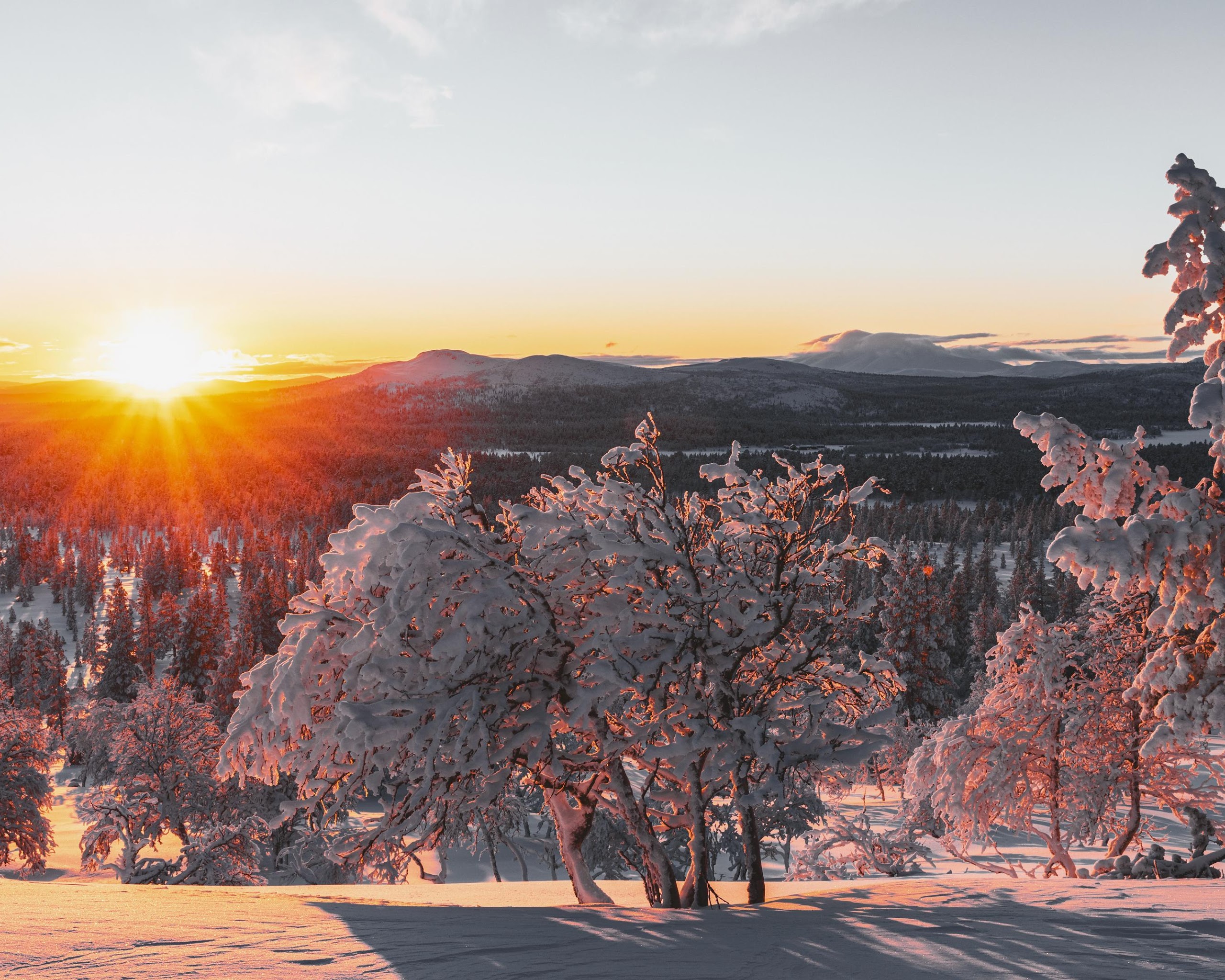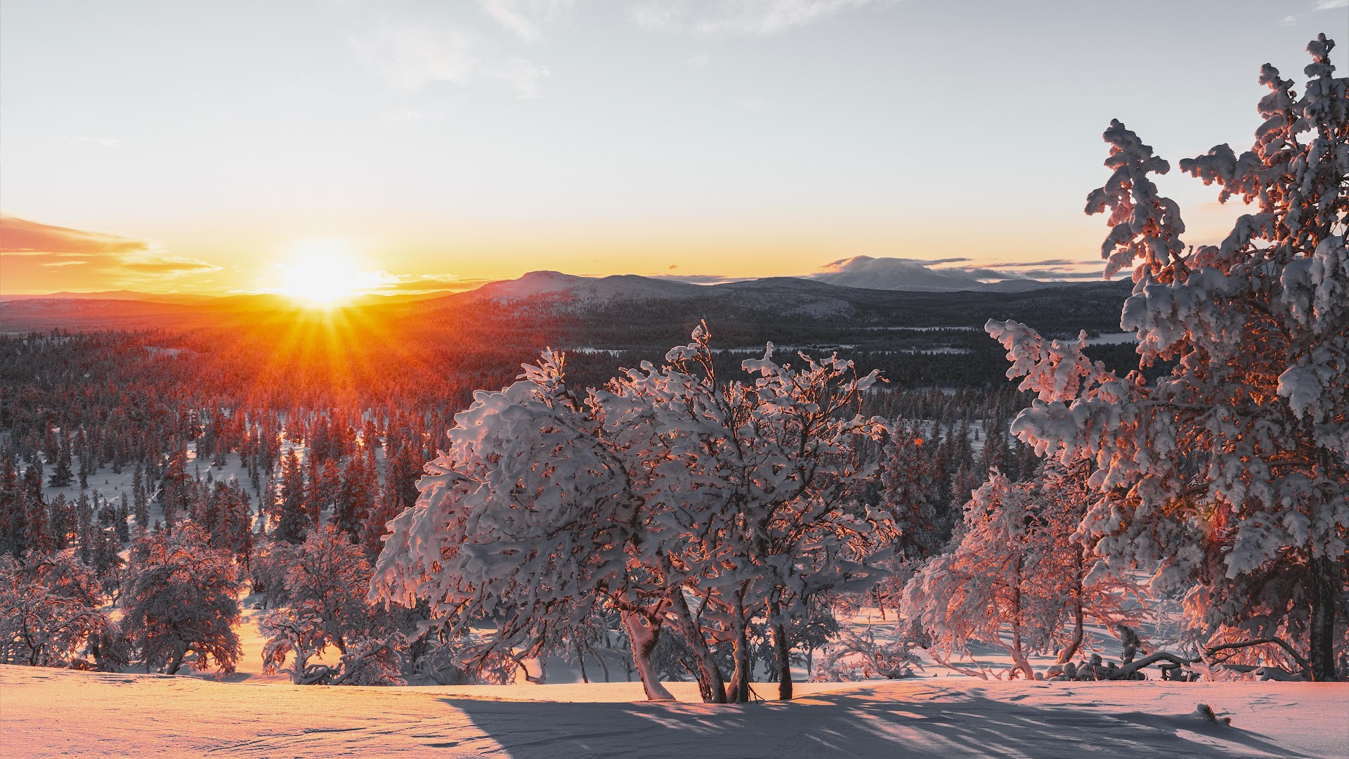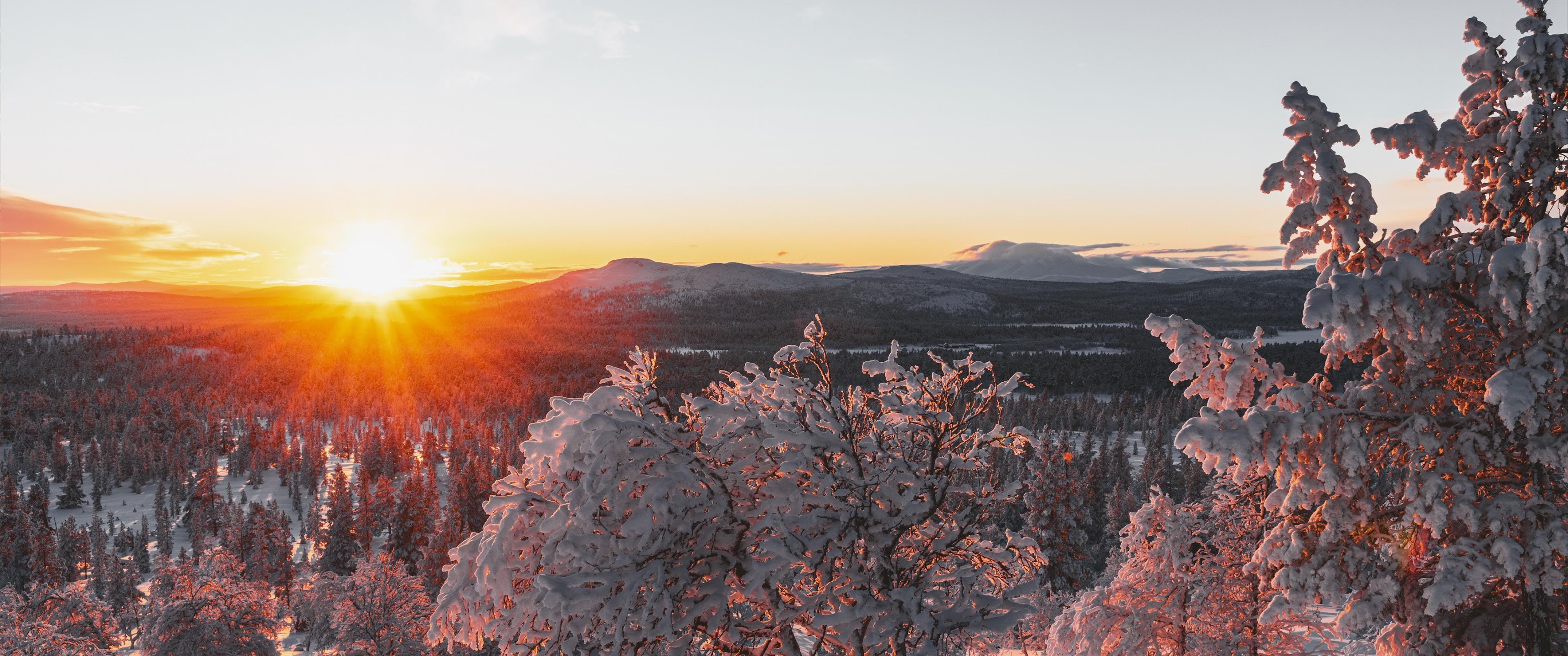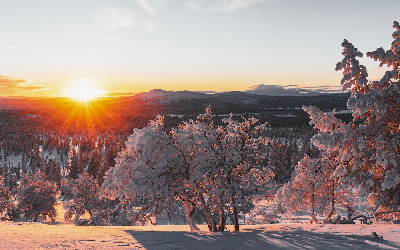 Winter Sunset, Snowy Forest, Mountain Landscape, Nature Photography 4K Desktop Wallpaper