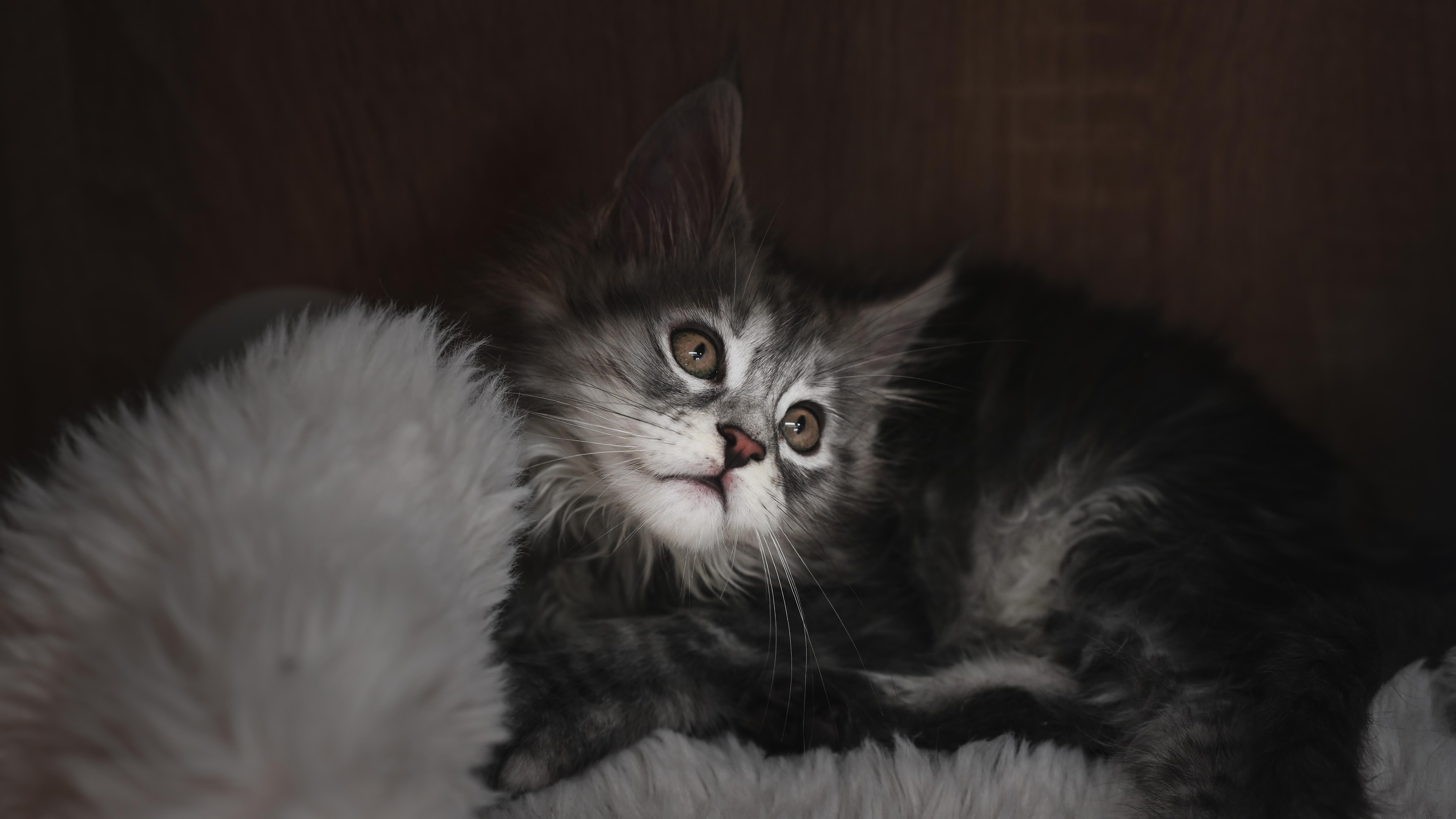 Adorable Maine Coon Kitten Portrait 8K Desktop Wallpaper
