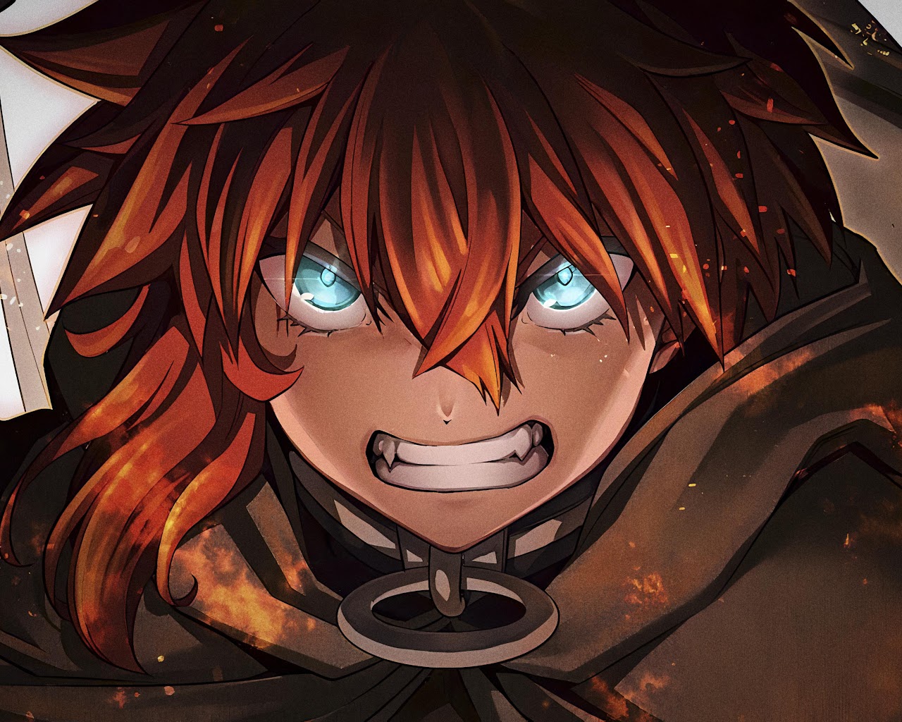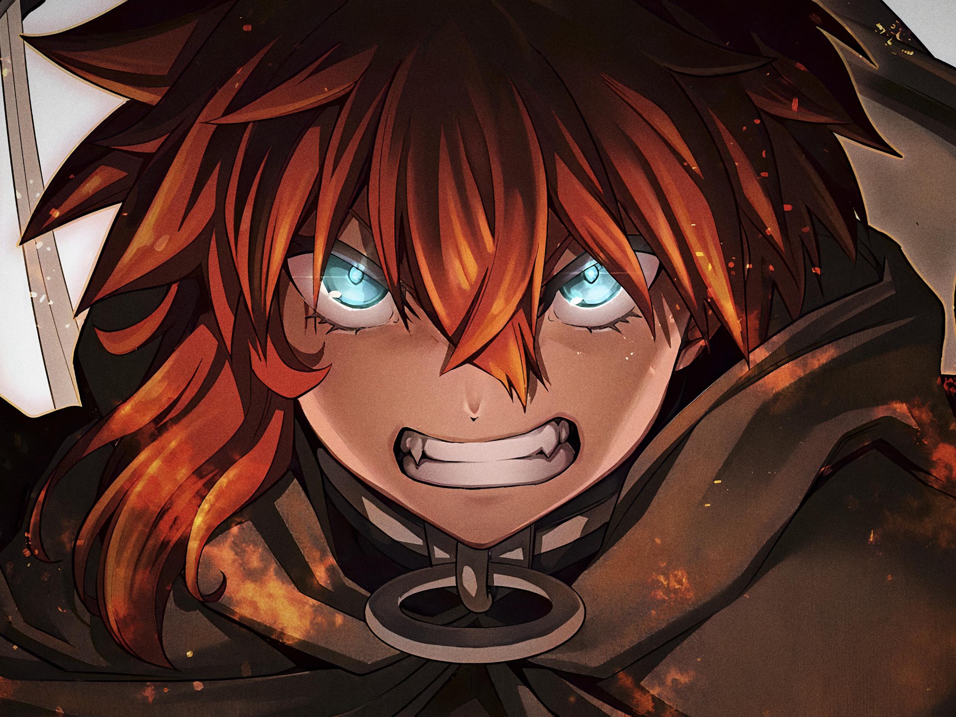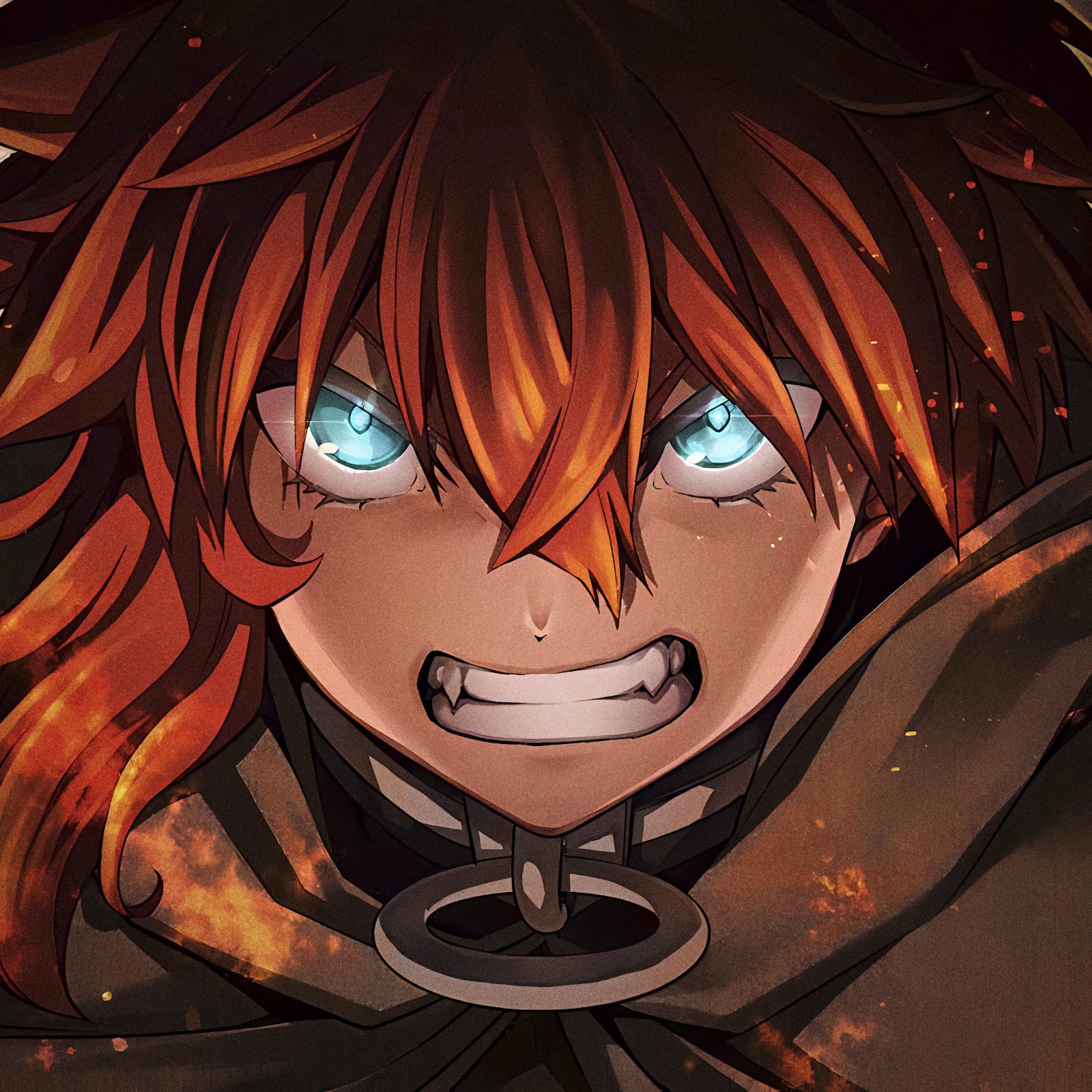 Allen Walker from D.Gray-man shows intense power with fiery orange hair and bright glowing blue eyes.