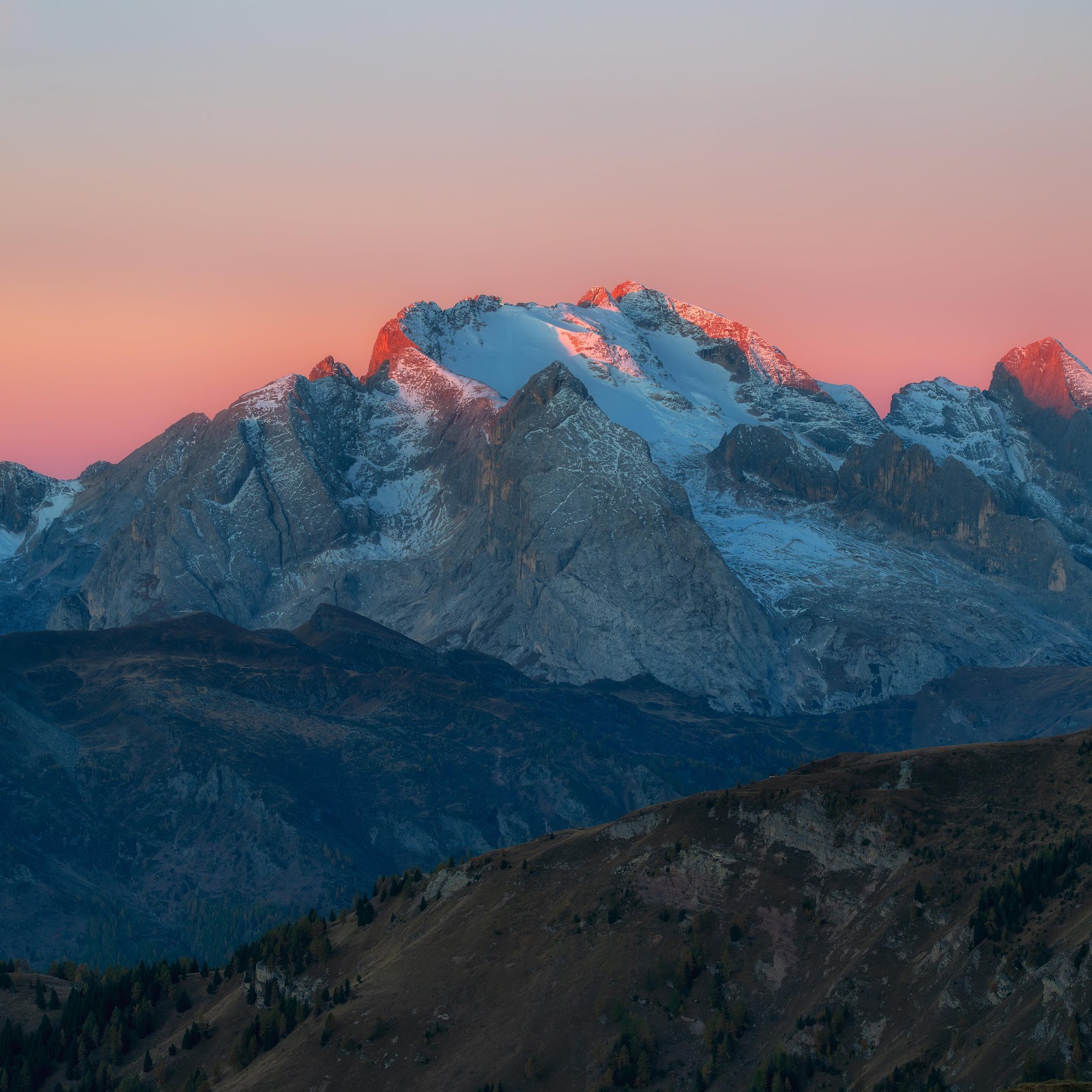 Alpenglow On Rugged Mountain Peaks 5K Desktop Wallpaper