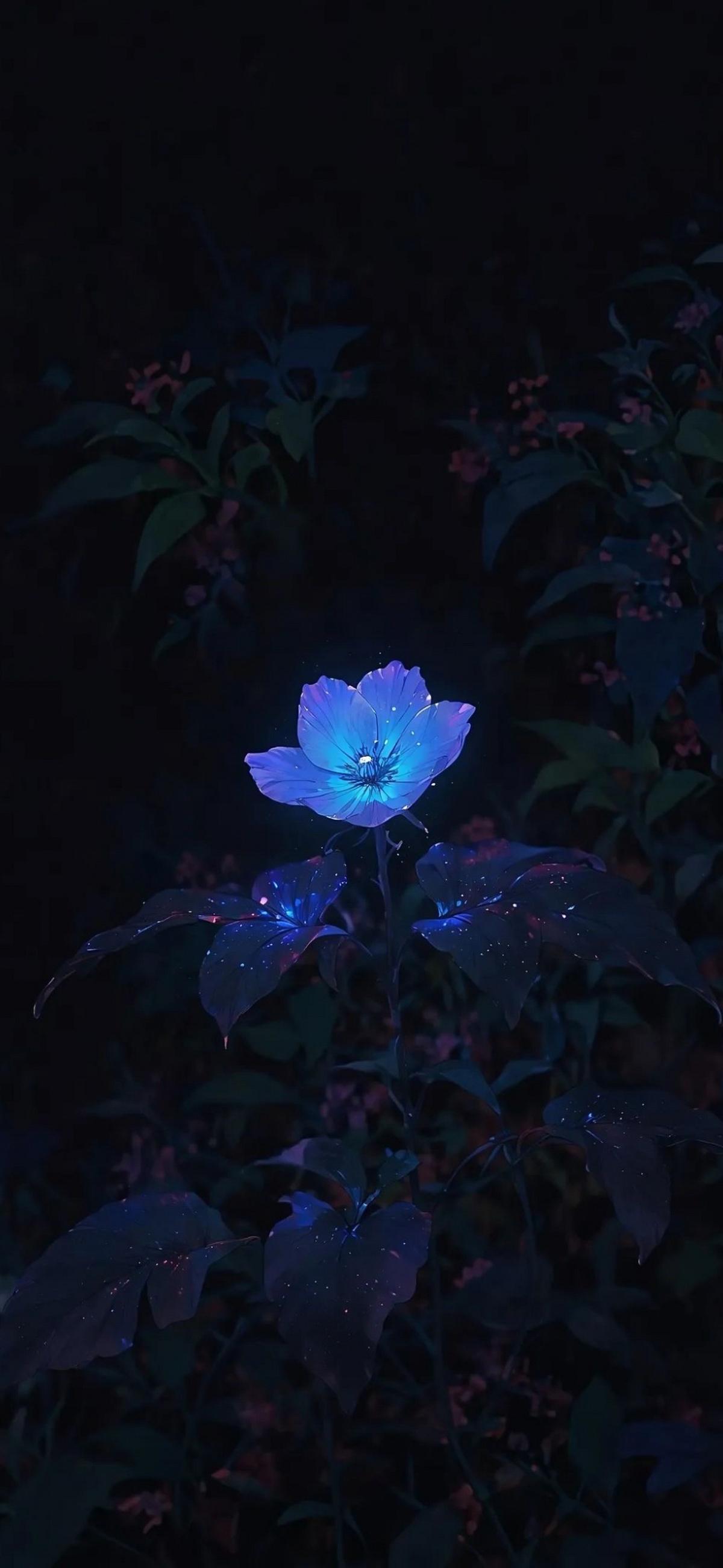 Blue Bioluminescent Flower Bloom Full HD iPhone Phone Wallpaper