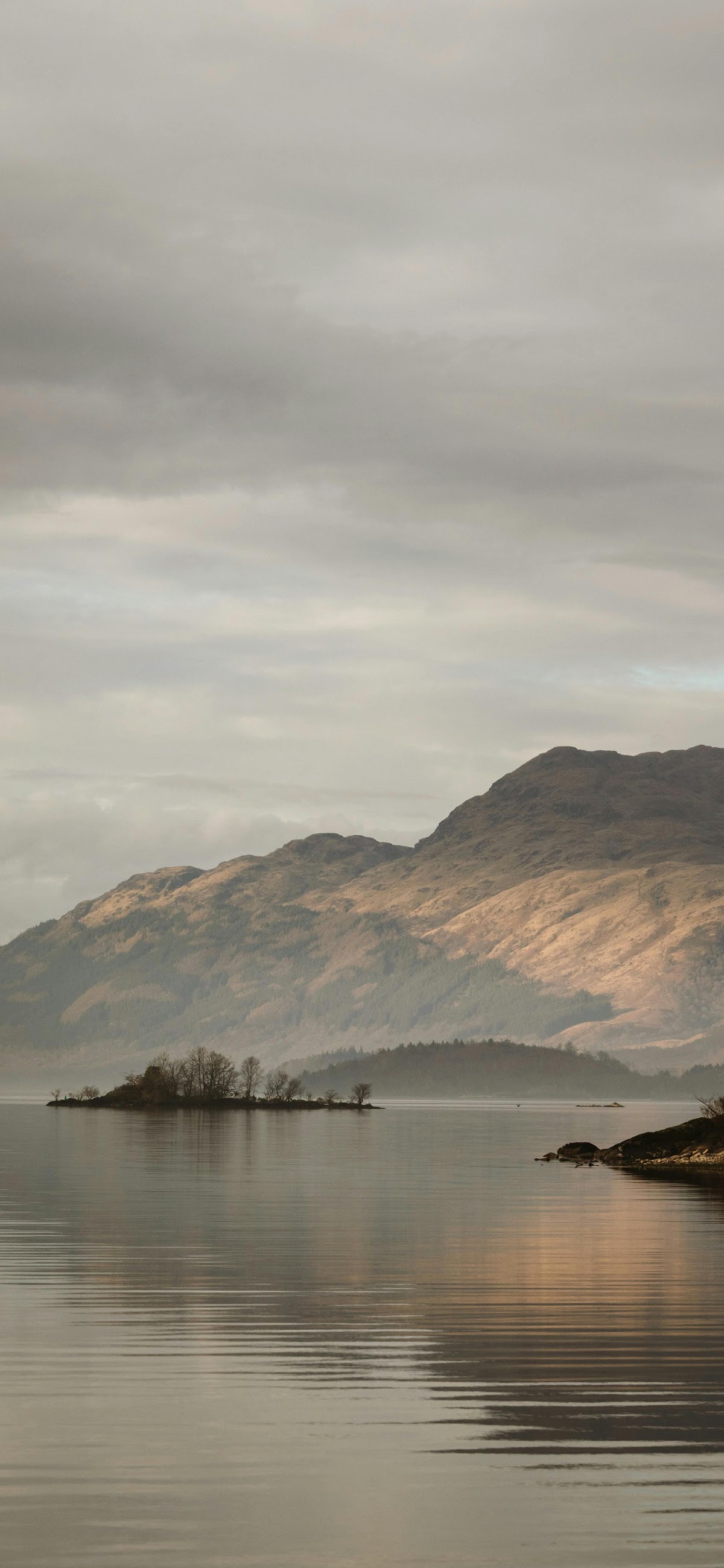 Calm Loch Under Muted Skies 4K iPhone Wallpaper A serene mountain lake shows a small wooded island reflecting on the still water under an overcast and hazy sky. vu250 1.14 MB 2571x5570 Download original File Size: Dimensions: Resolution: 4K Format: Mobile ID: Gray Island Loch Mountain View Nature Overcast Sky Still Water