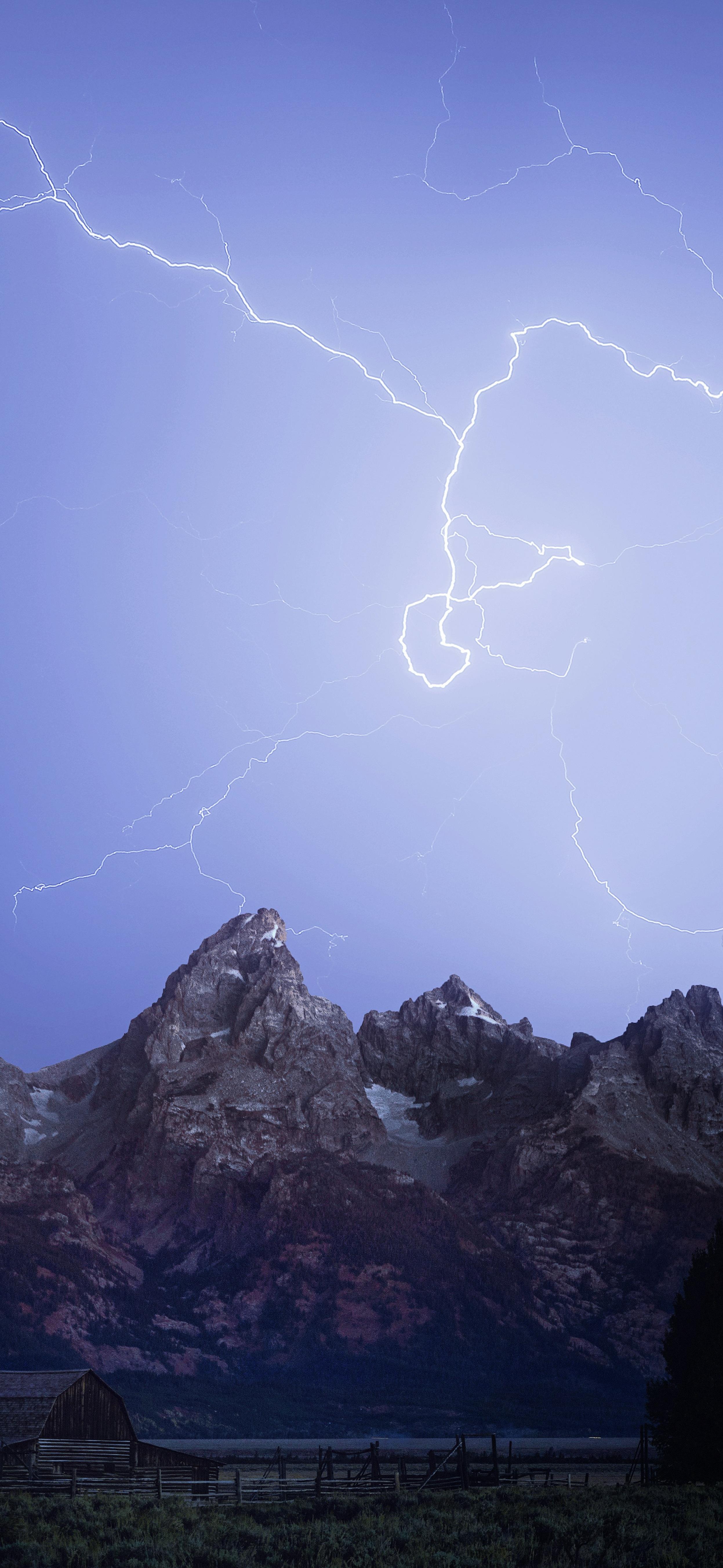 Dramatic Lightning Over Mountain Peaks - Nature Photography 4K iPhone Wallpaper (2494x5403)