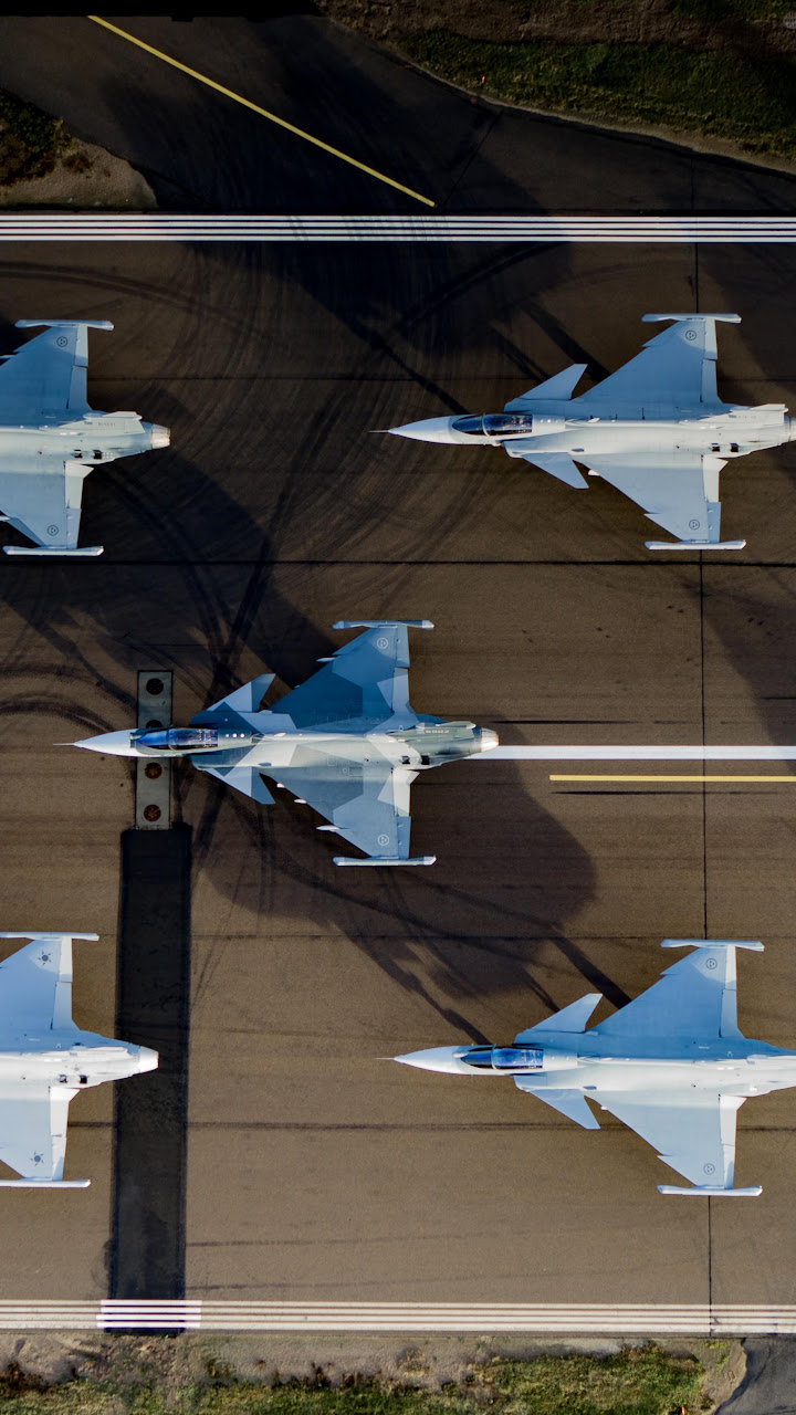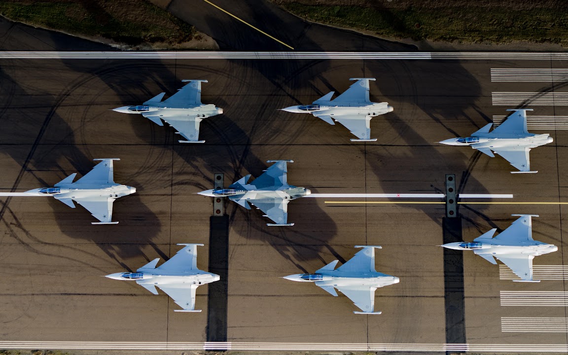 Eight Gripen Fighter Jets Lined Up 4K Desktop Wallpaper