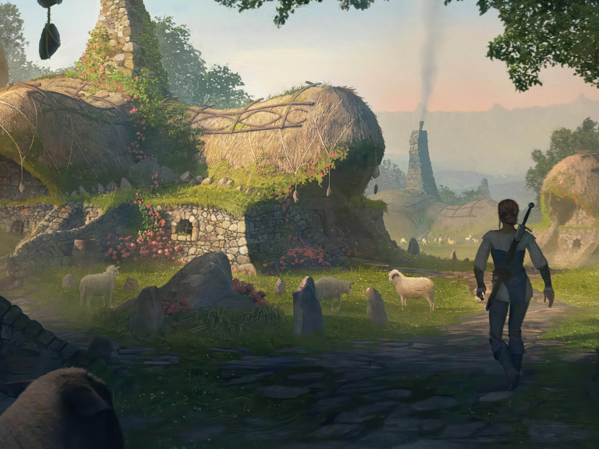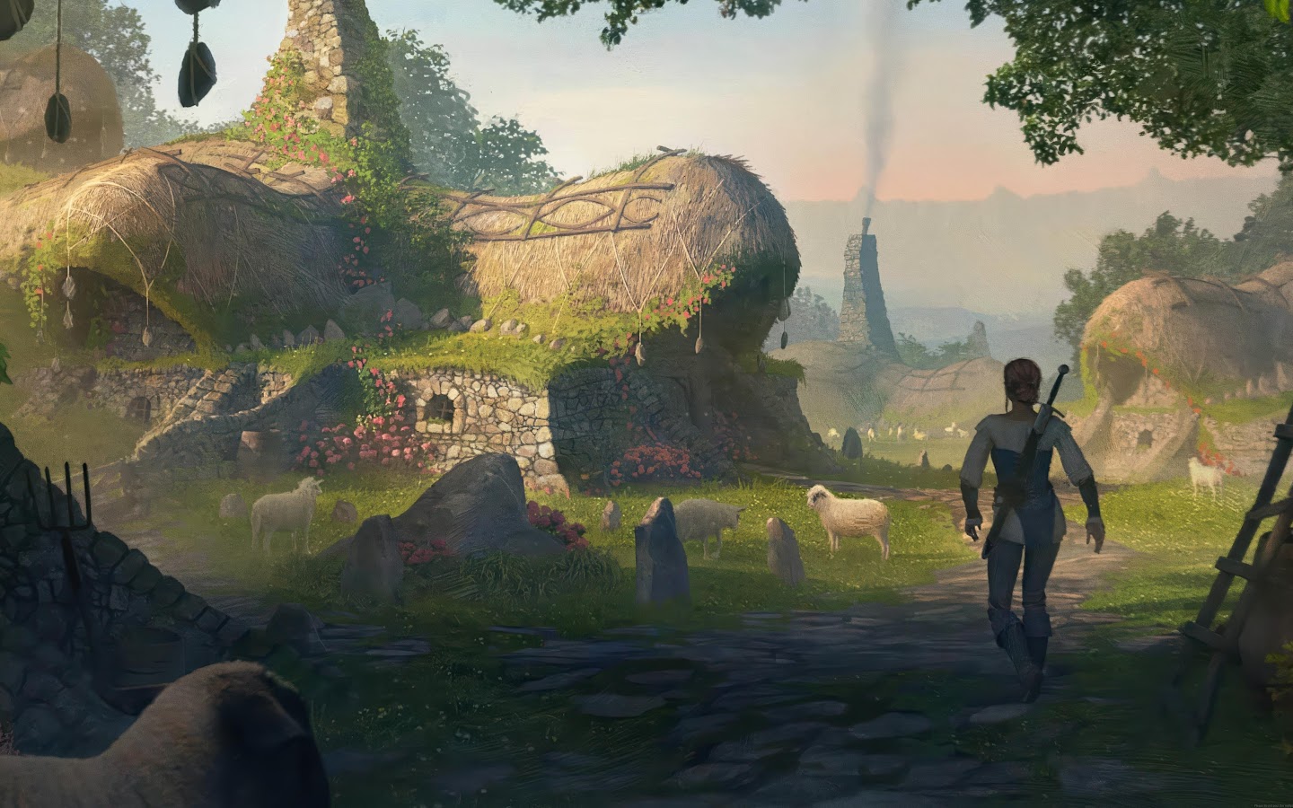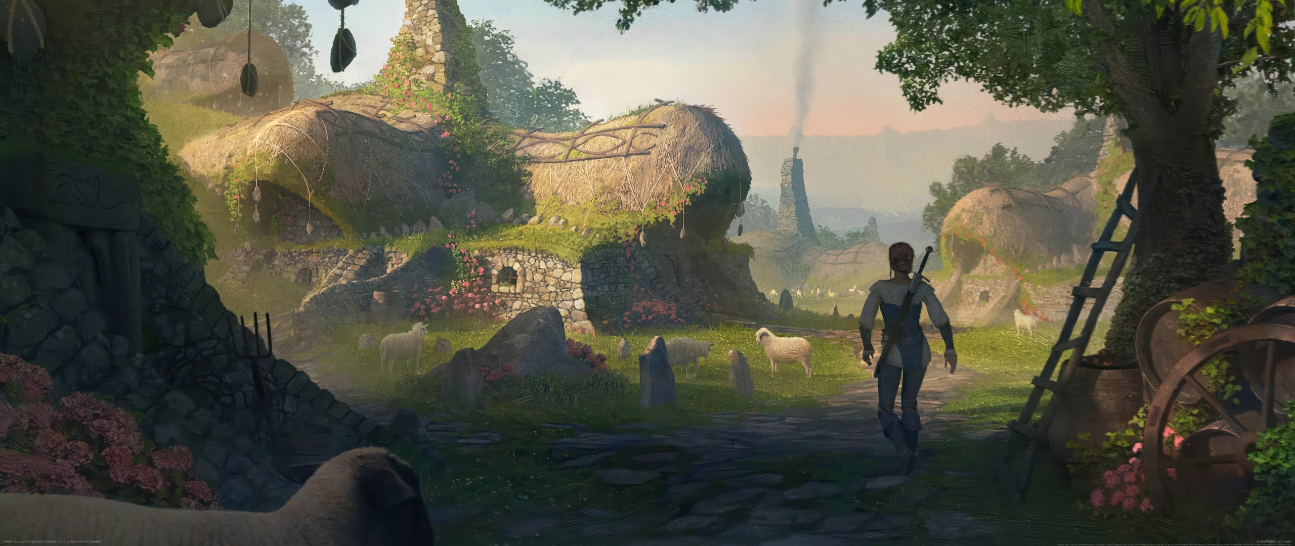 Fable Heroine Exploring A Sheep Farm 4K Ultrawide Desktop Wallpaper
