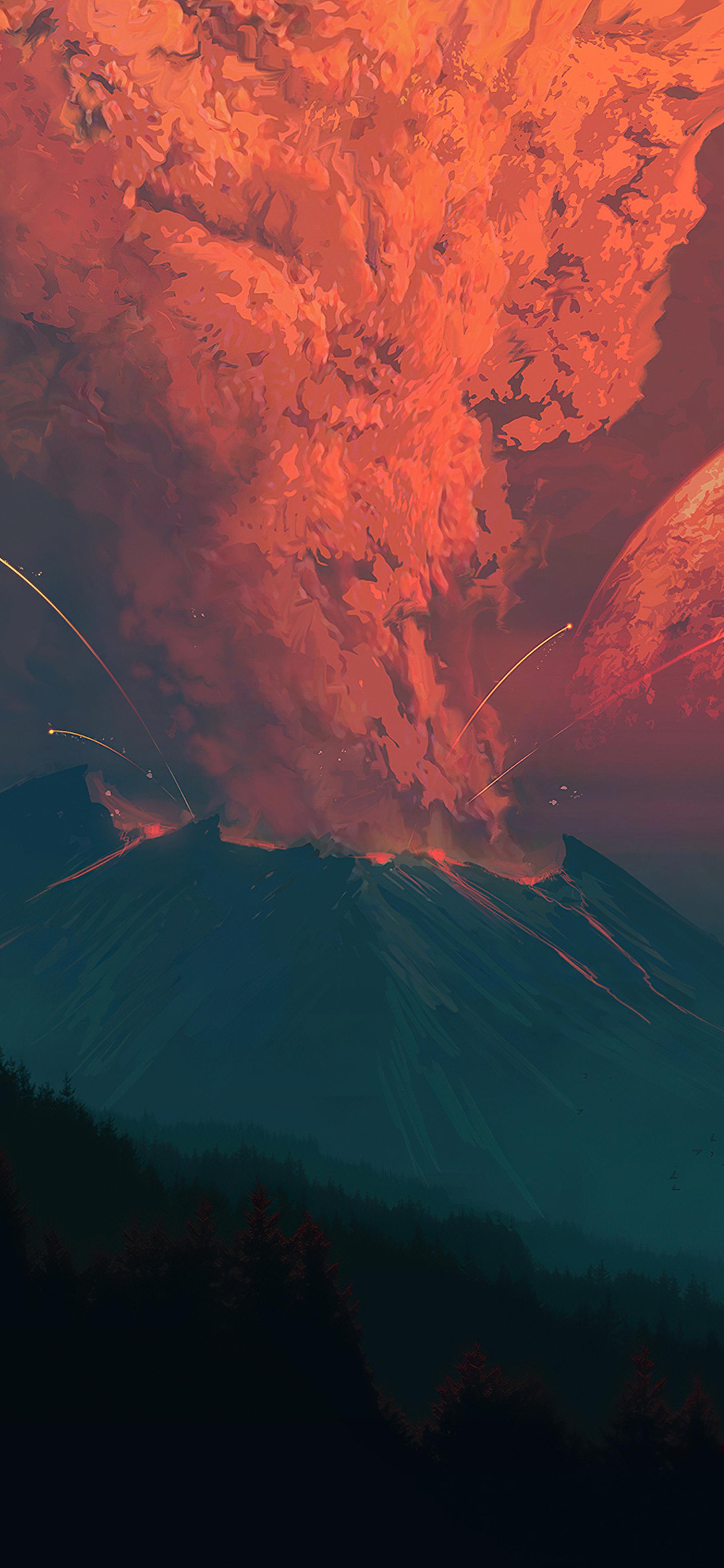 Massive Fiery Volcano Eruption - Dramatic Digital Painting 2K iPhone Wallpaper (1772x3839)
