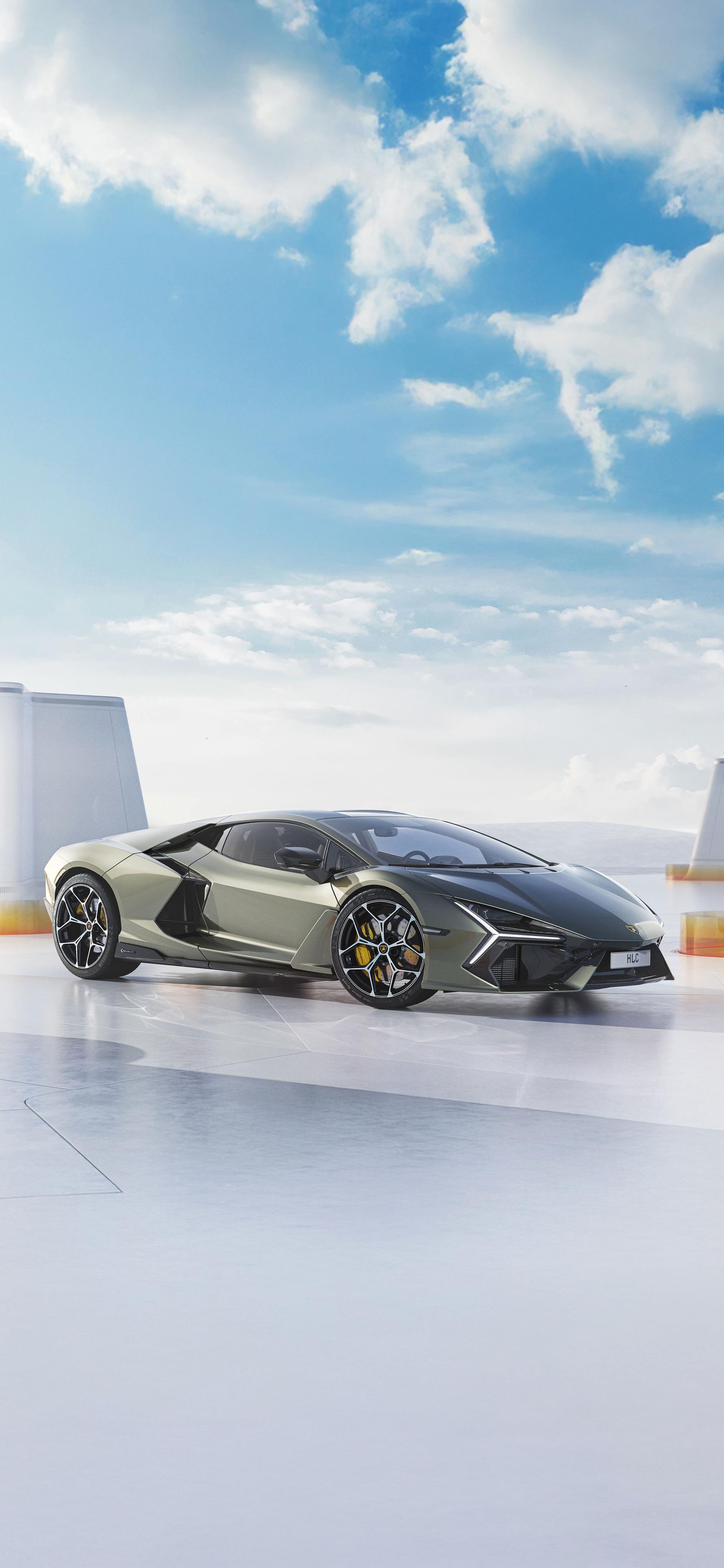 Modern Lamborghini Supercar Under Sky - Automotive CGI Render 2K iPhone Wallpaper (1772x3839)