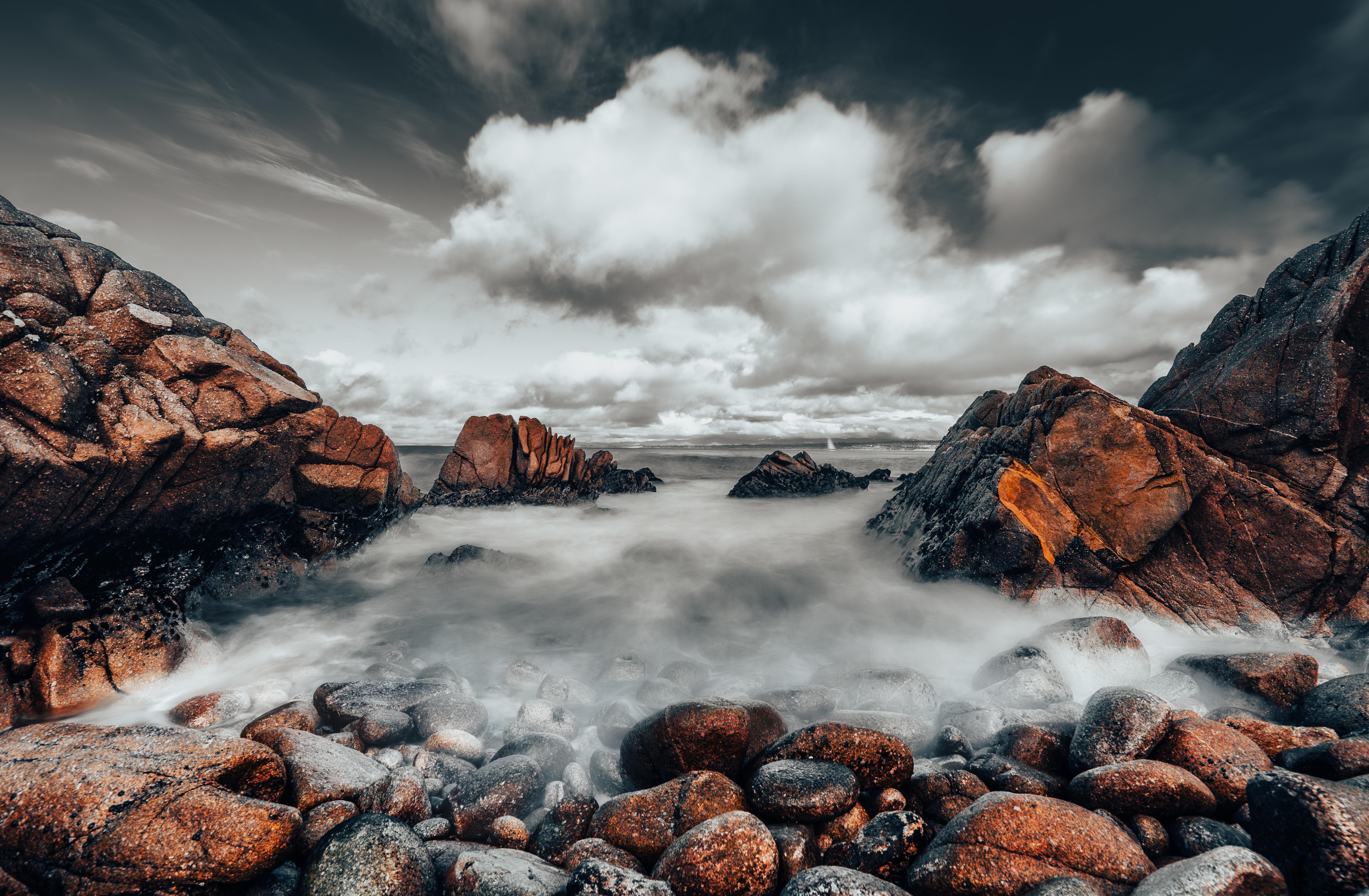 Moody Coastal Rocks Long Exposure - Long Exposure Landscape 5K Wallpaper (5995x3925)