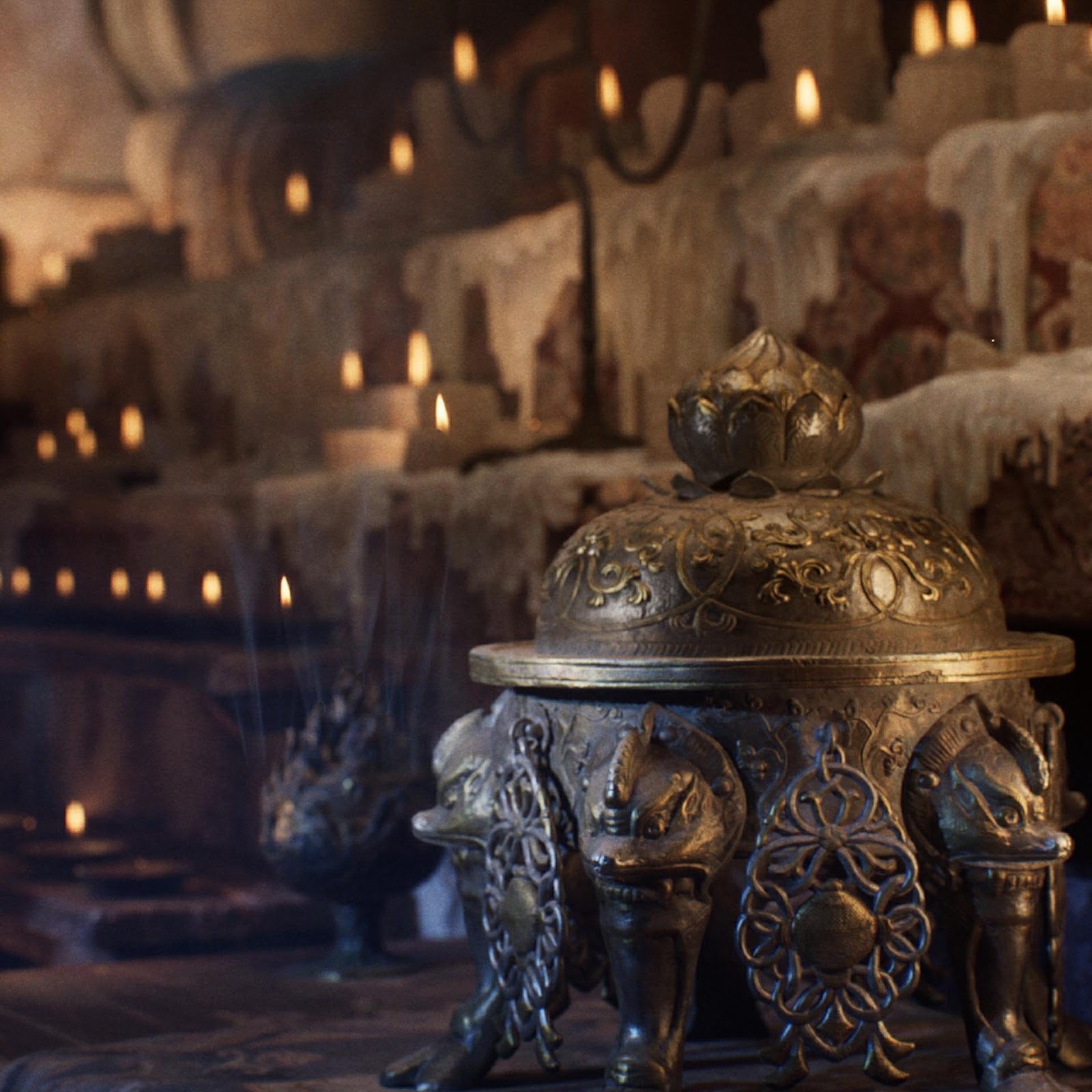 Ornate Temple Censer Surrounded By Candles 2K Desktop Wallpaper