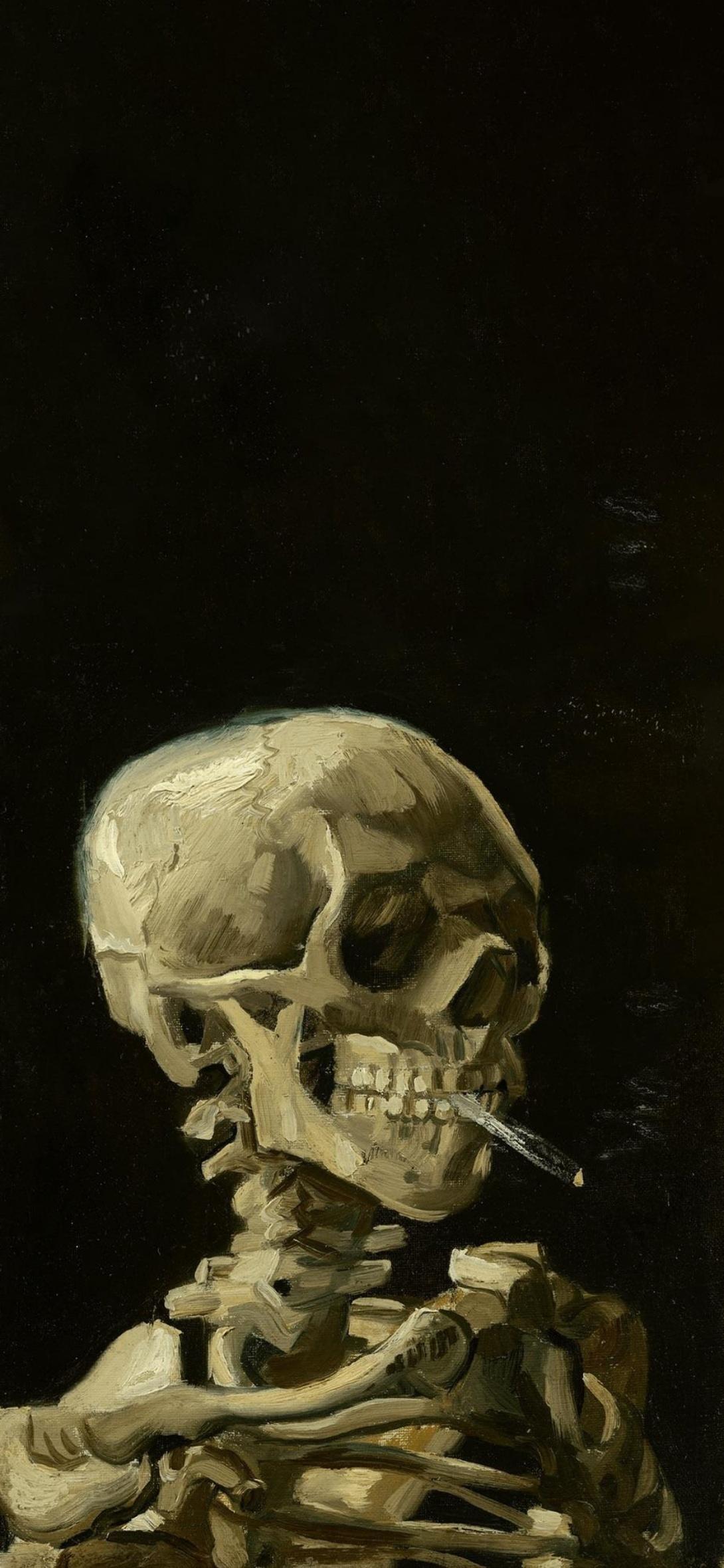 Smoking Skeleton Oil Painting Full HD iPhone Phone Wallpaper