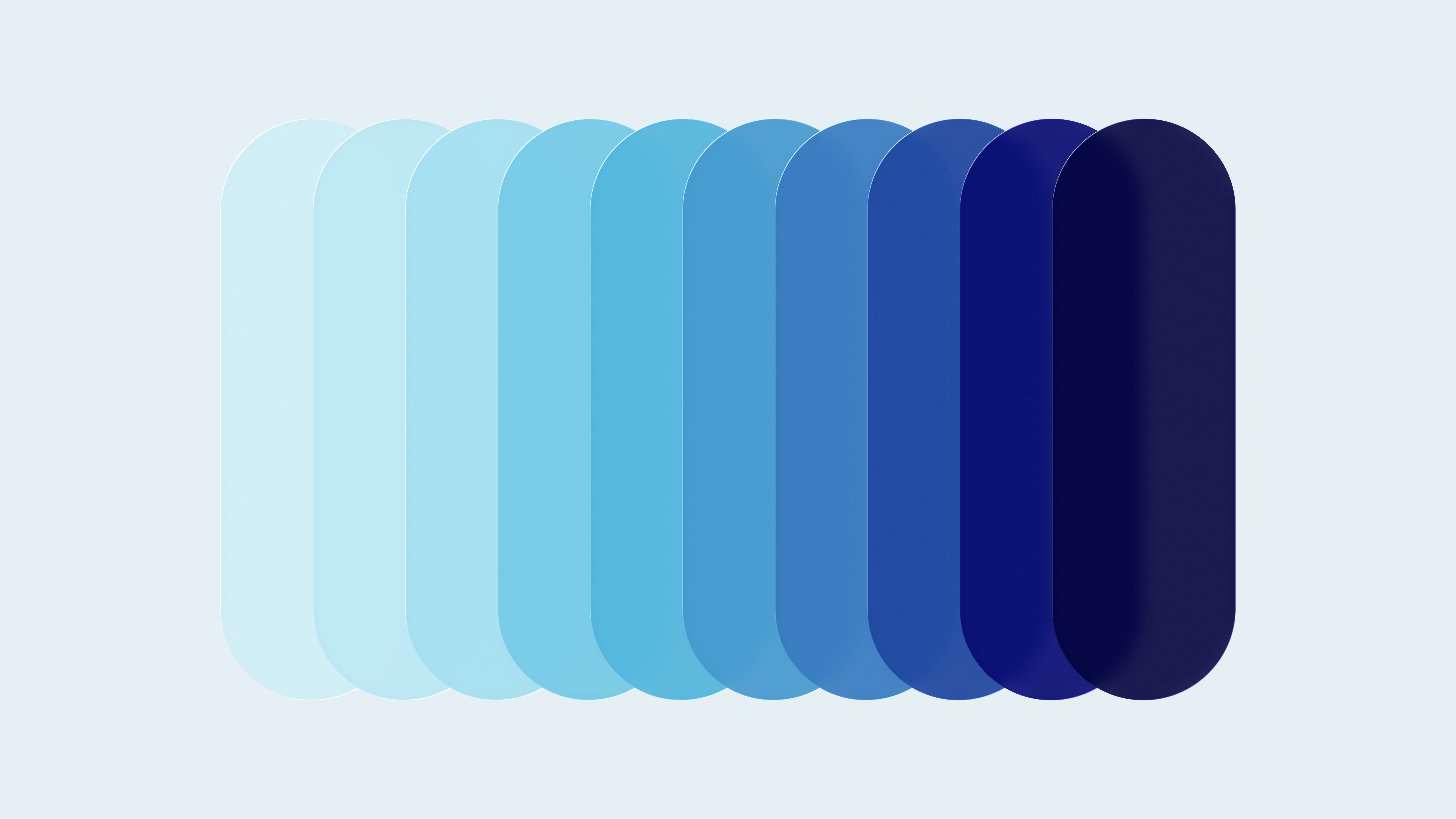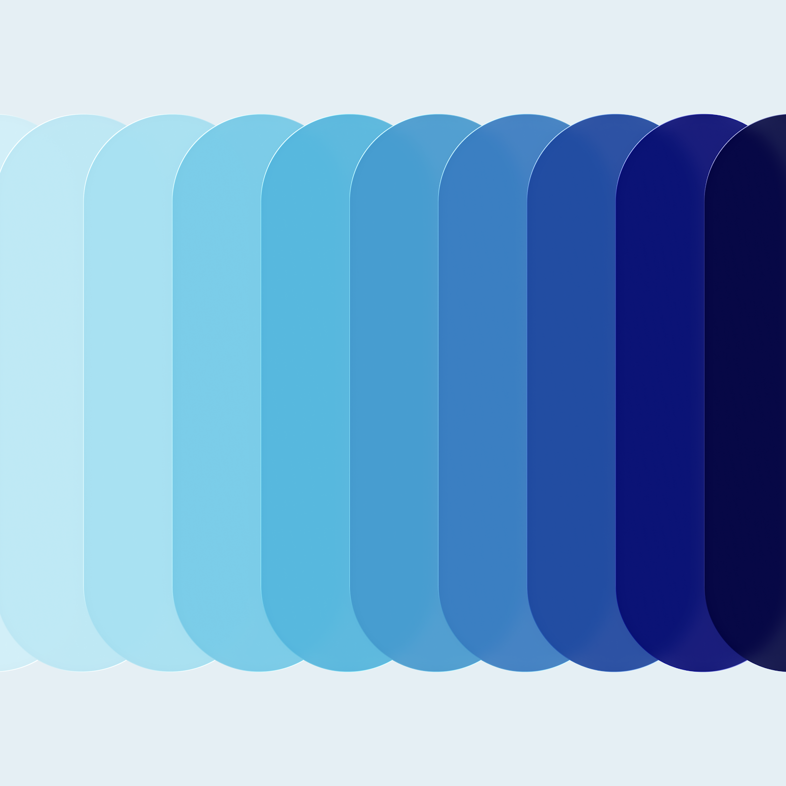 Vertical rounded rectangles show a smooth transition of blue hues from light sky blue to dark navy blue against a soft background.