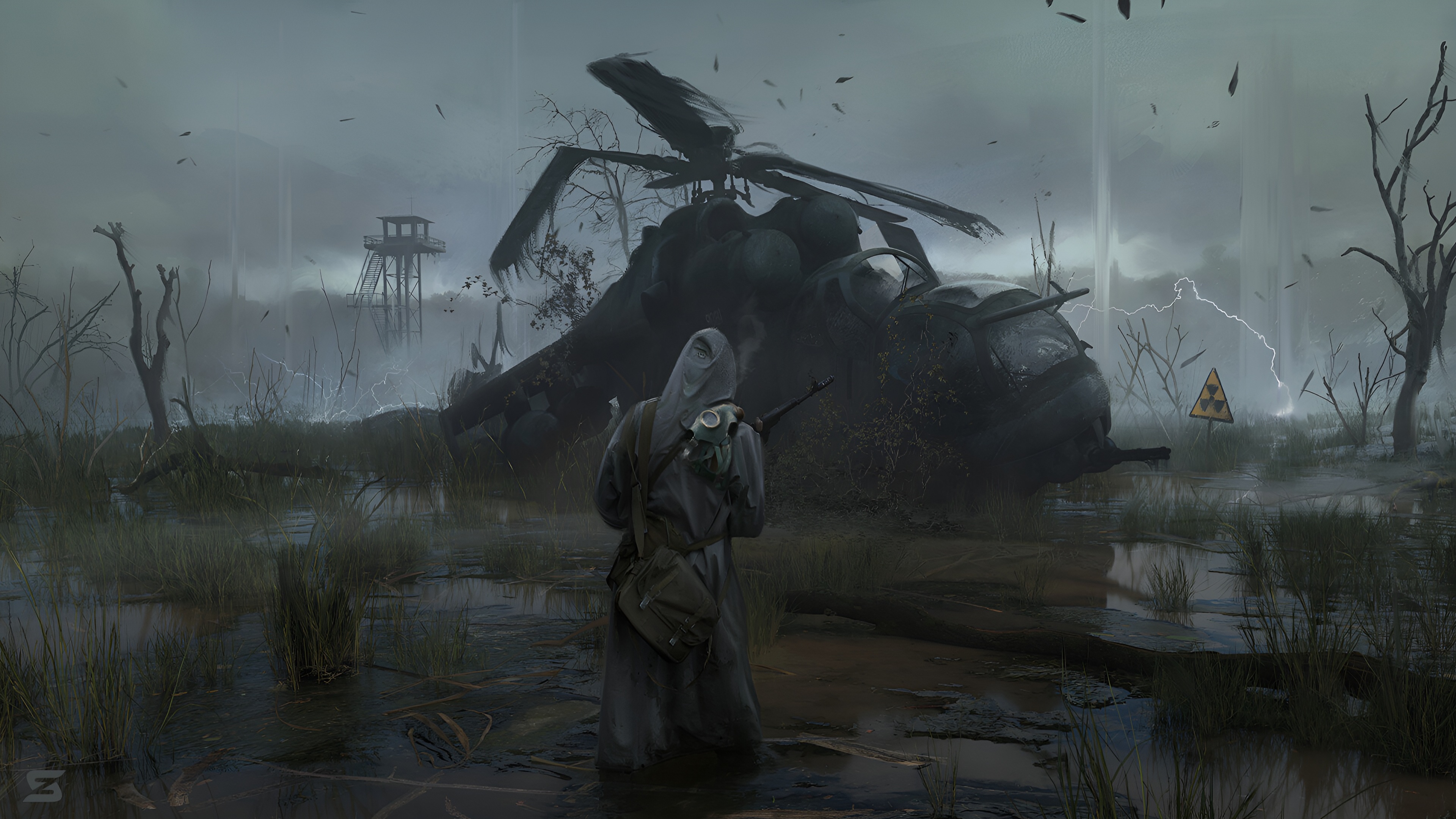 Stalker In The Radioactive Swamp 4K Desktop Wallpaper