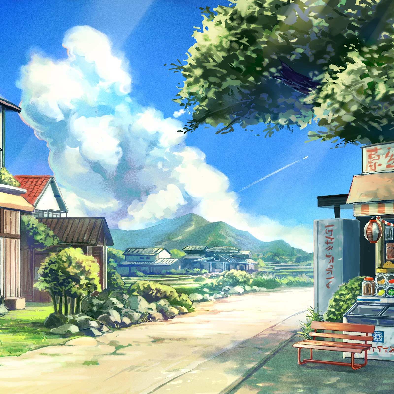 Sunny Japanese Roadside Store - Anime Background Art 4K Wallpaper (4742x2667)