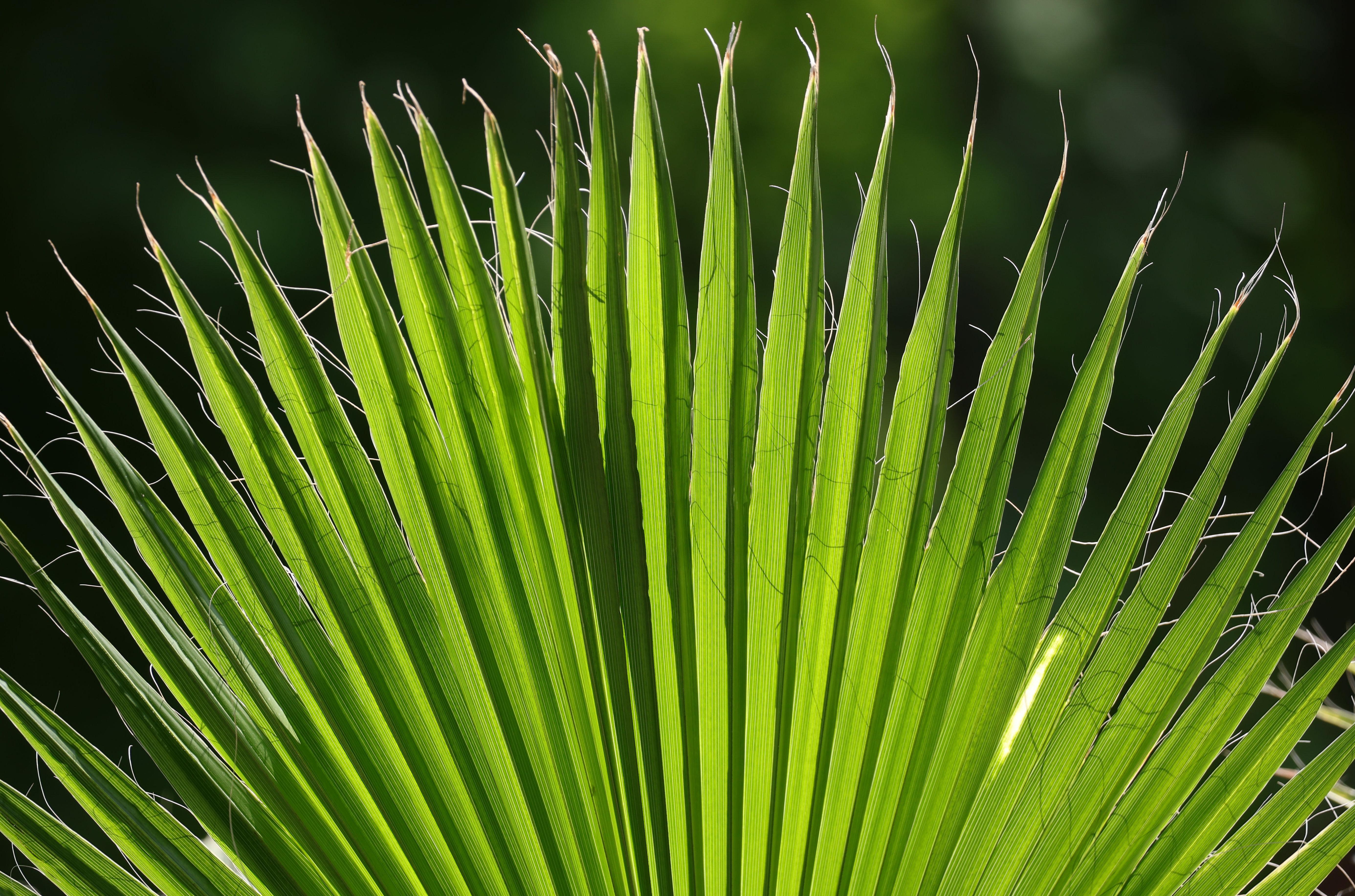 Vibrant Green Palm Frond Backlight 5K Desktop Wallpaper