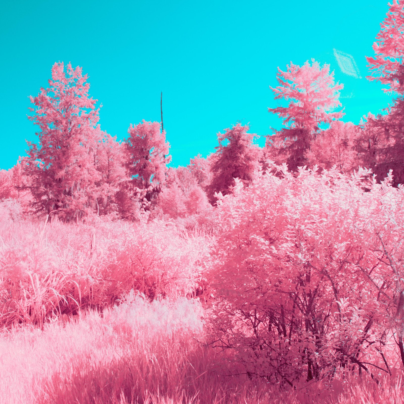 Vibrant Pink Forest Infrared Photo 5K Desktop Wallpaper