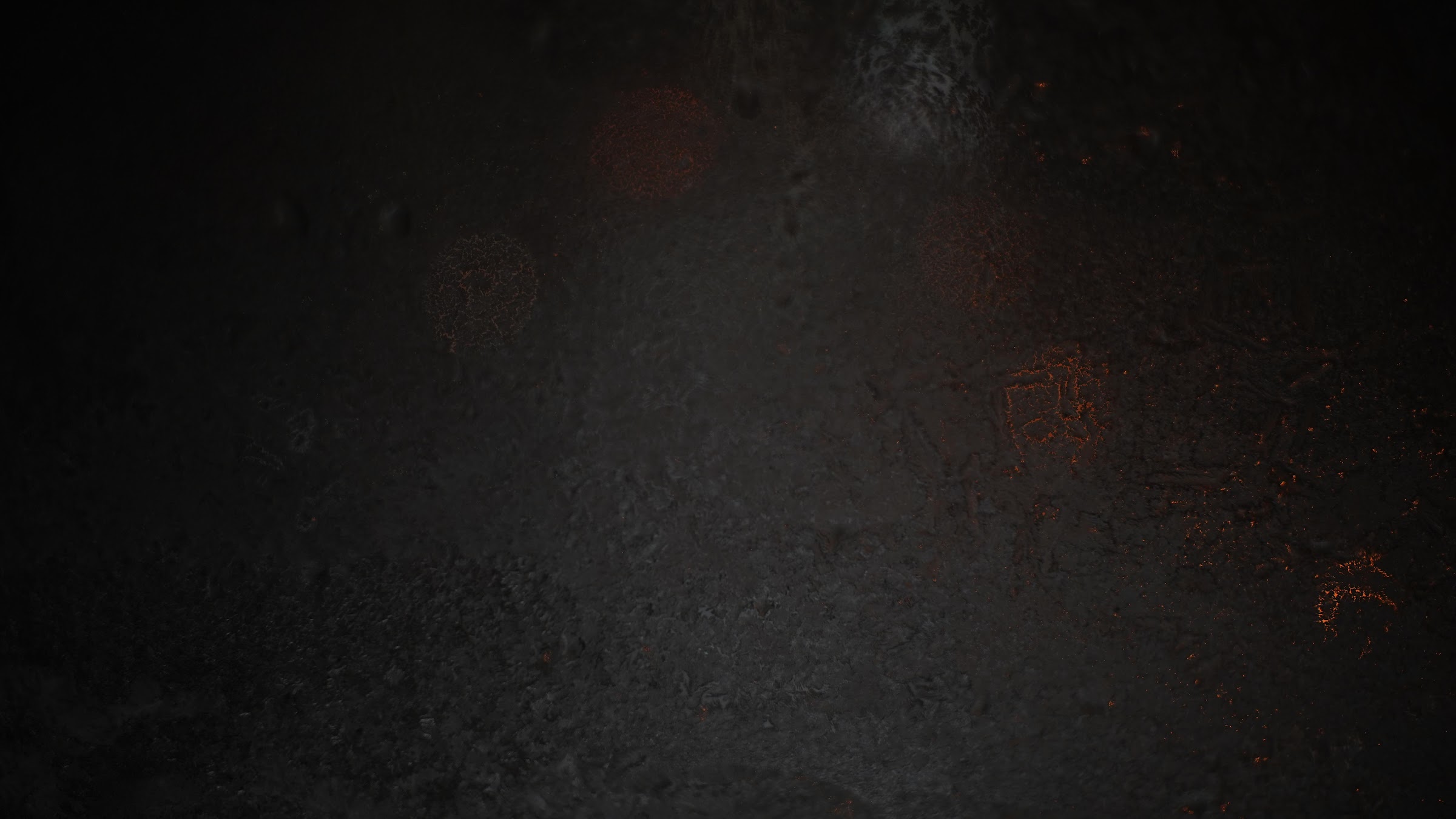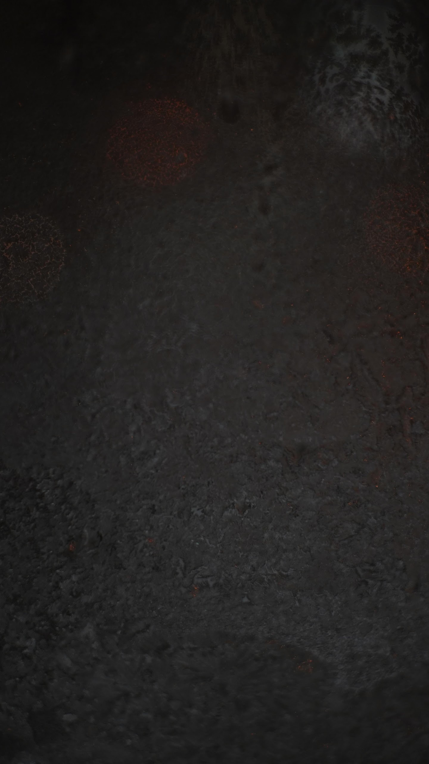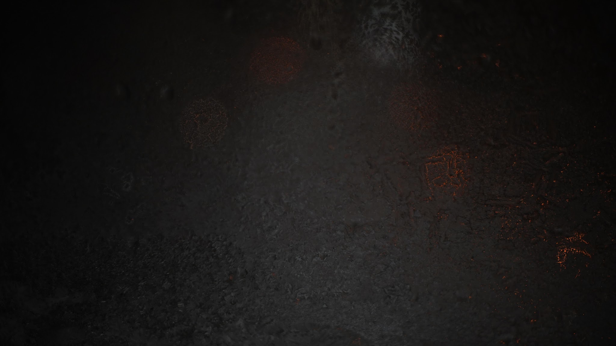 A dark moody textured wall stands with faint orange sparks and soft bokeh lights creating a mysterious and atmospheric background scene.