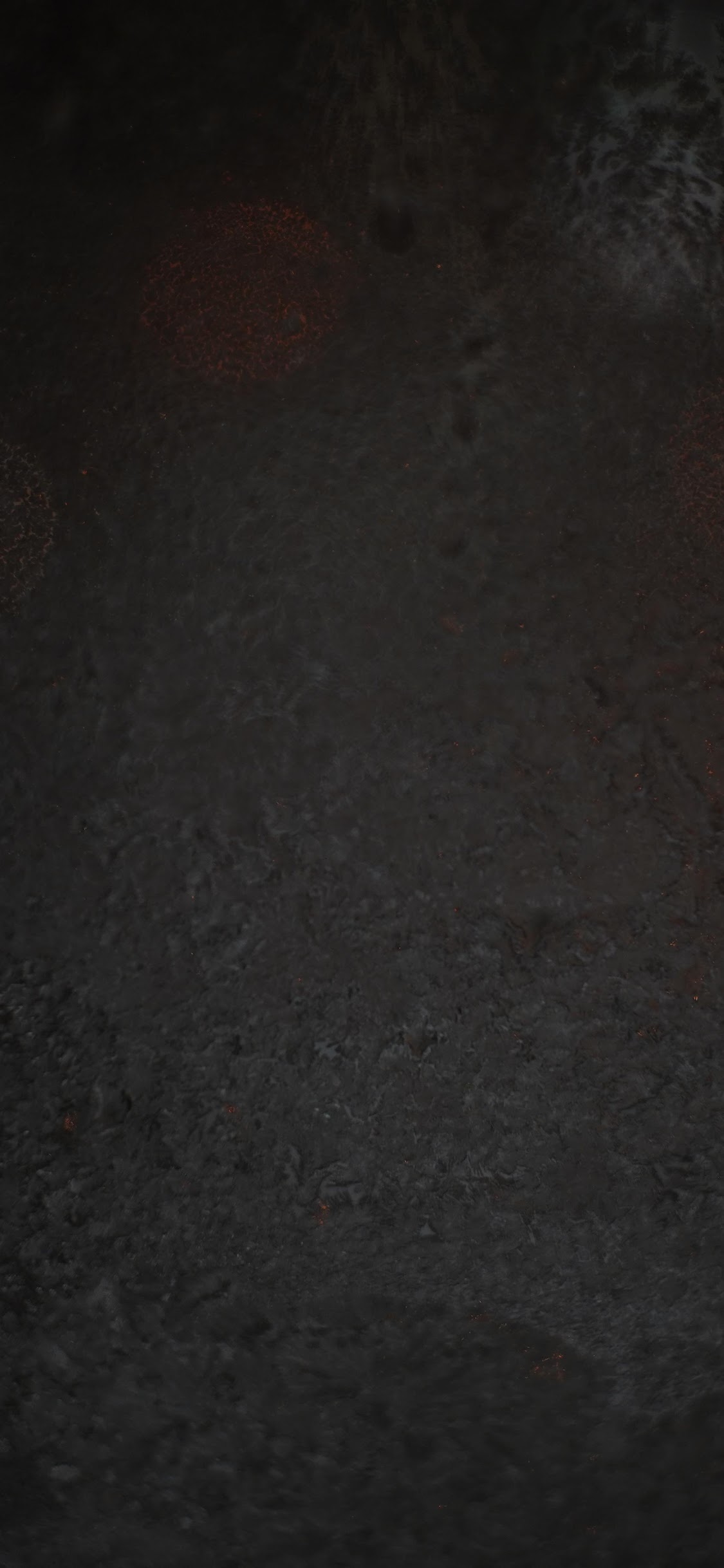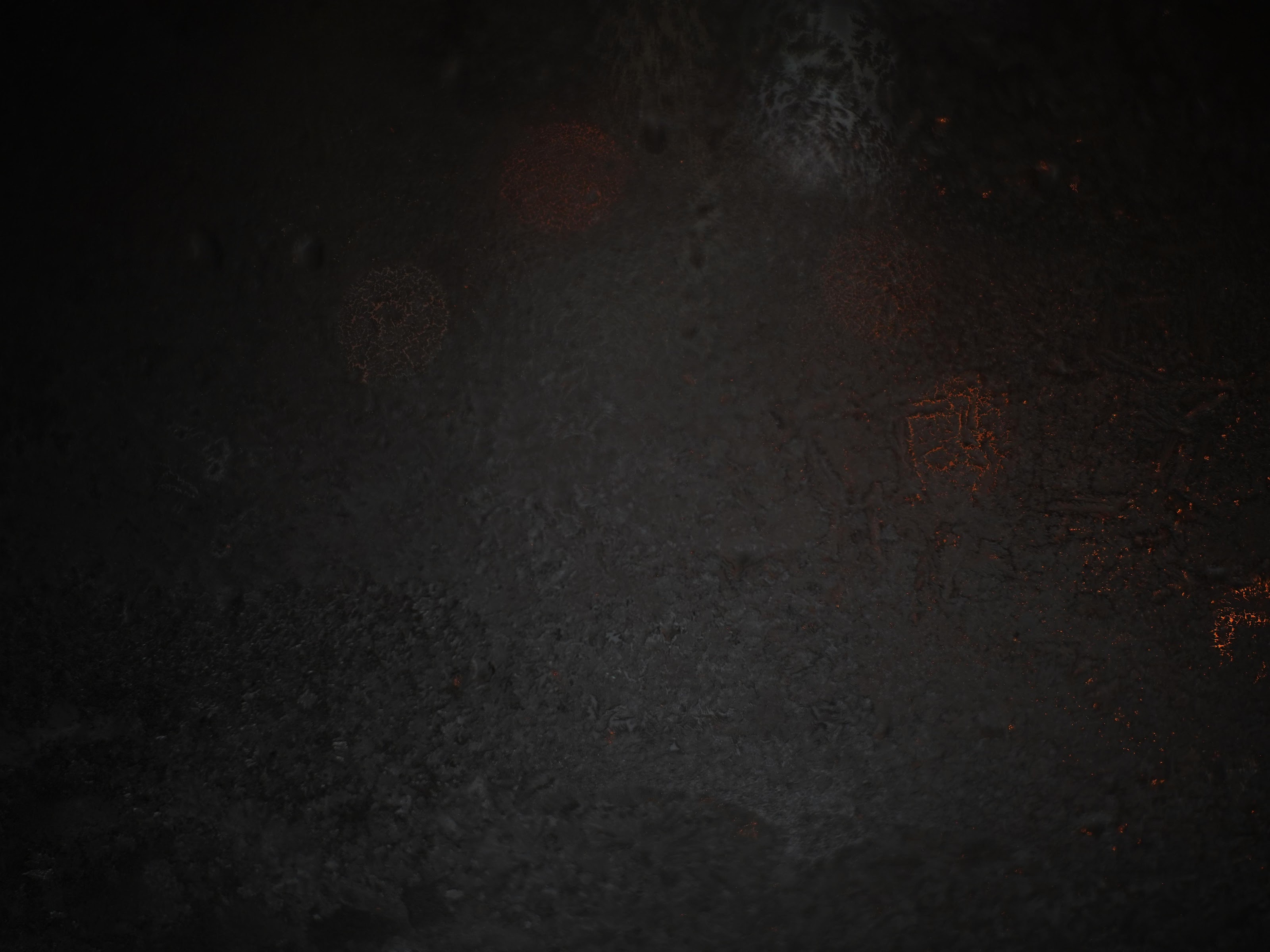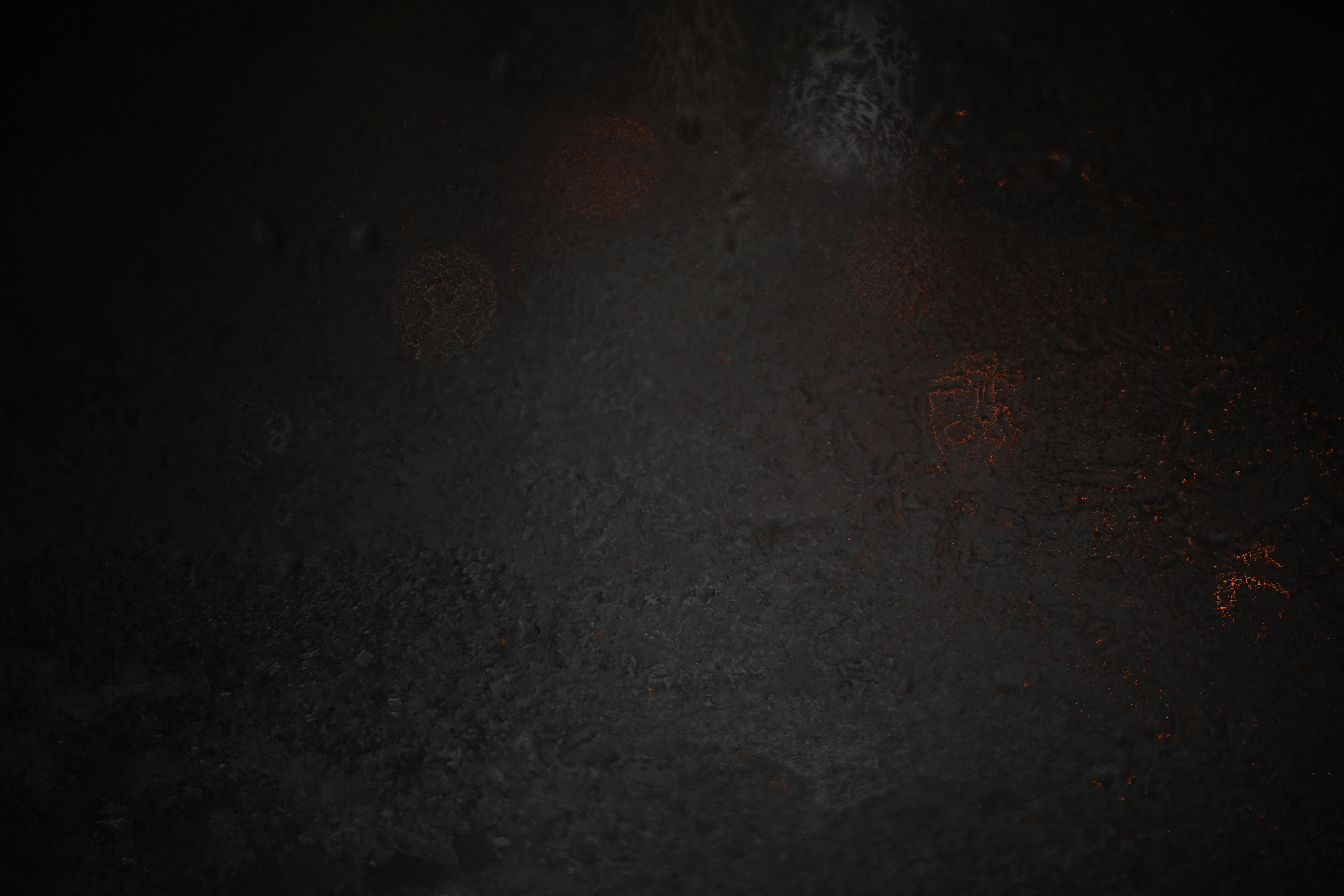 A dark moody textured wall stands with faint orange sparks and soft bokeh lights creating a mysterious and atmospheric background scene.