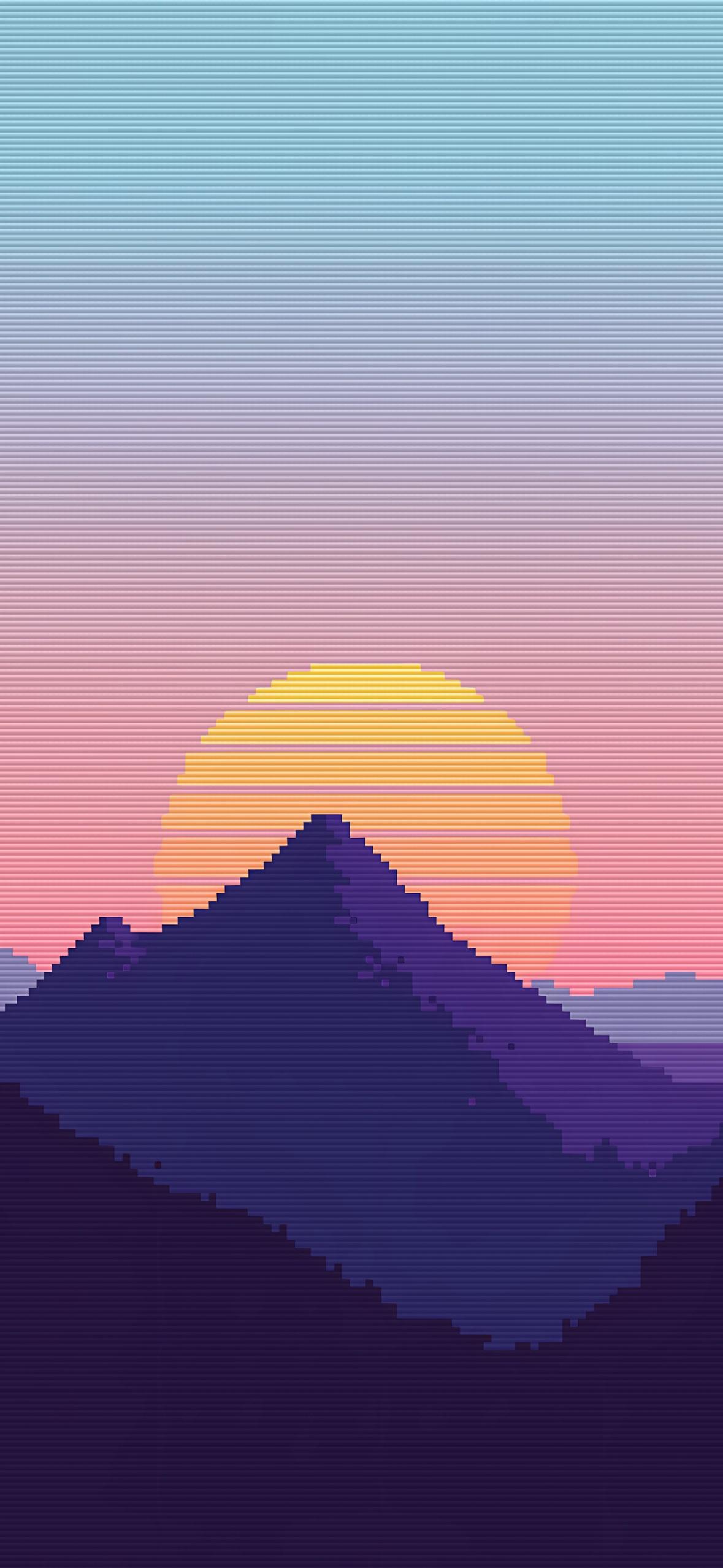 Pixel Art Mountain Sunset Full HD iPhone Phone Wallpaper