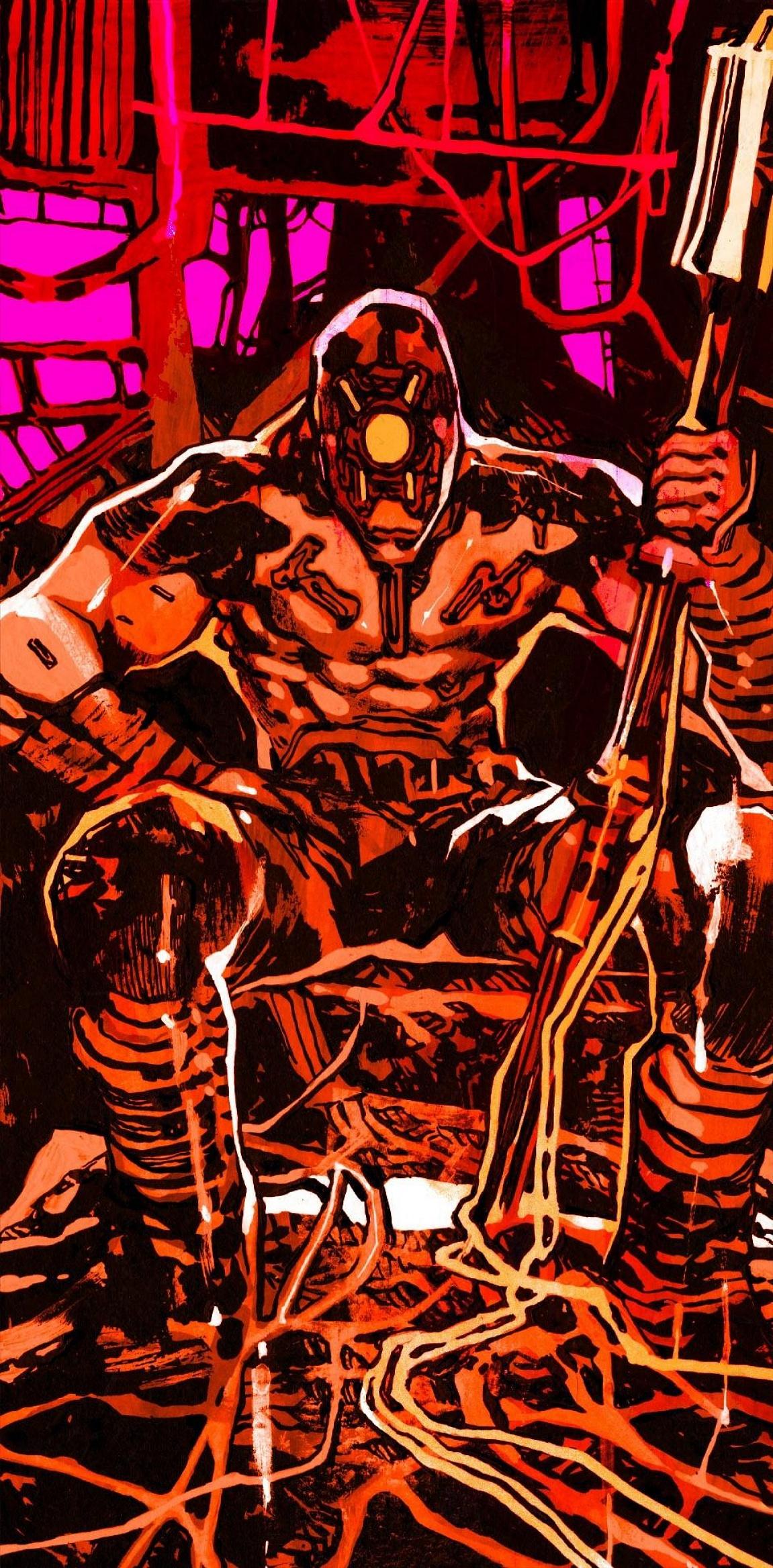 Prophet Warrior Holding Staff Full HD iPhone Wallpaper A powerful warrior from the Prophet comic book series sits with his large mace in a gritty sci-fi environment showing bold neon pink and orange colors. hs639 478.94 KB 1151x2336 Download original File Size: Dimensions: Resolution: Full HD Format: Mobile ID: Comic Art Cyborg Illustration Prophet Red Sci-Fi Warrior