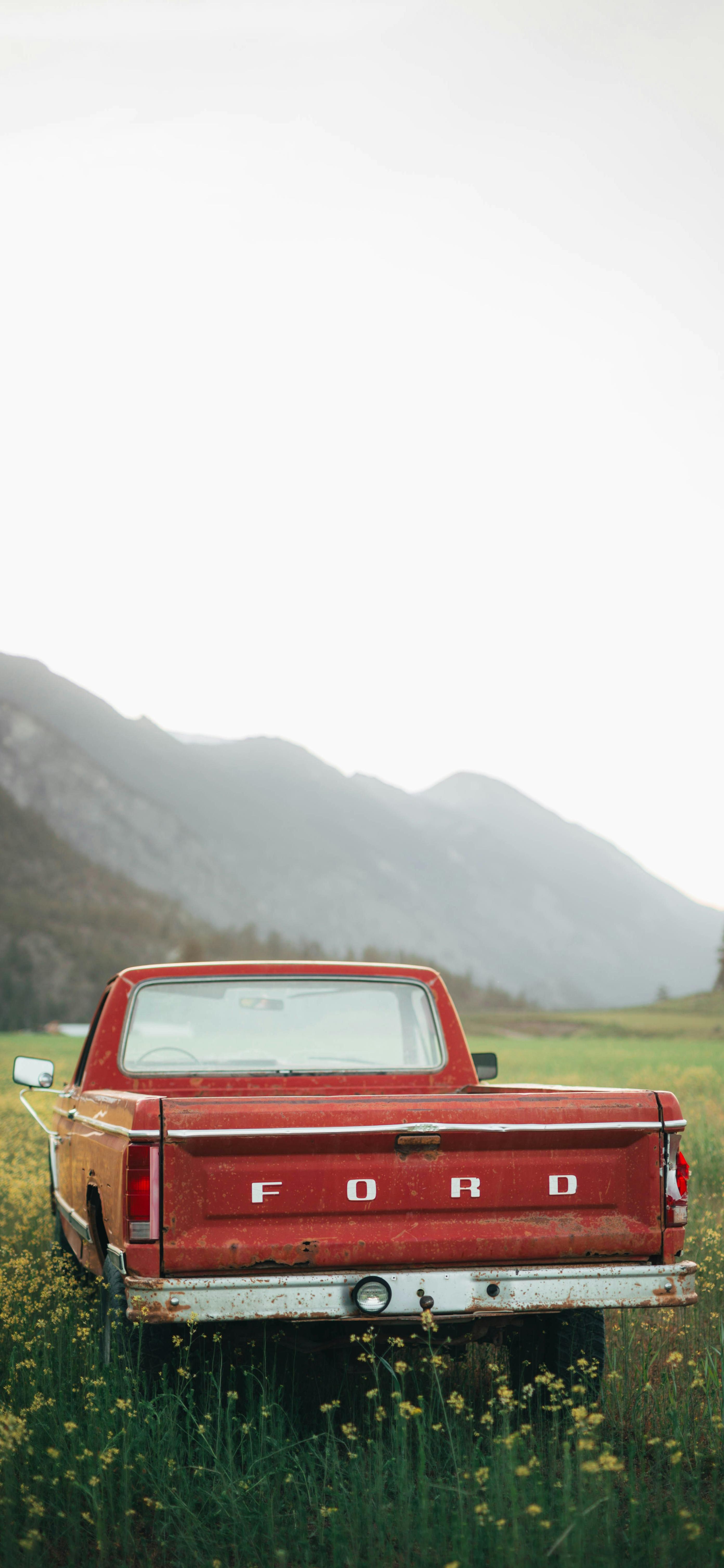 Rustic Red Ford Truck Tailgate 4K iPhone Wallpaper A rusty red Ford pickup truck is parked in a lush field of tall grass with mountains visible in the hazy background. du037 773.33 KB 2785x6034 Download original File Size: Dimensions: Resolution: 4K Format: Mobile ID: Field Ford Mountains Pickup Truck Red Rustic Vintage