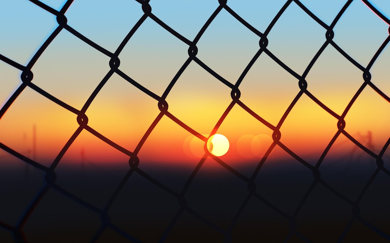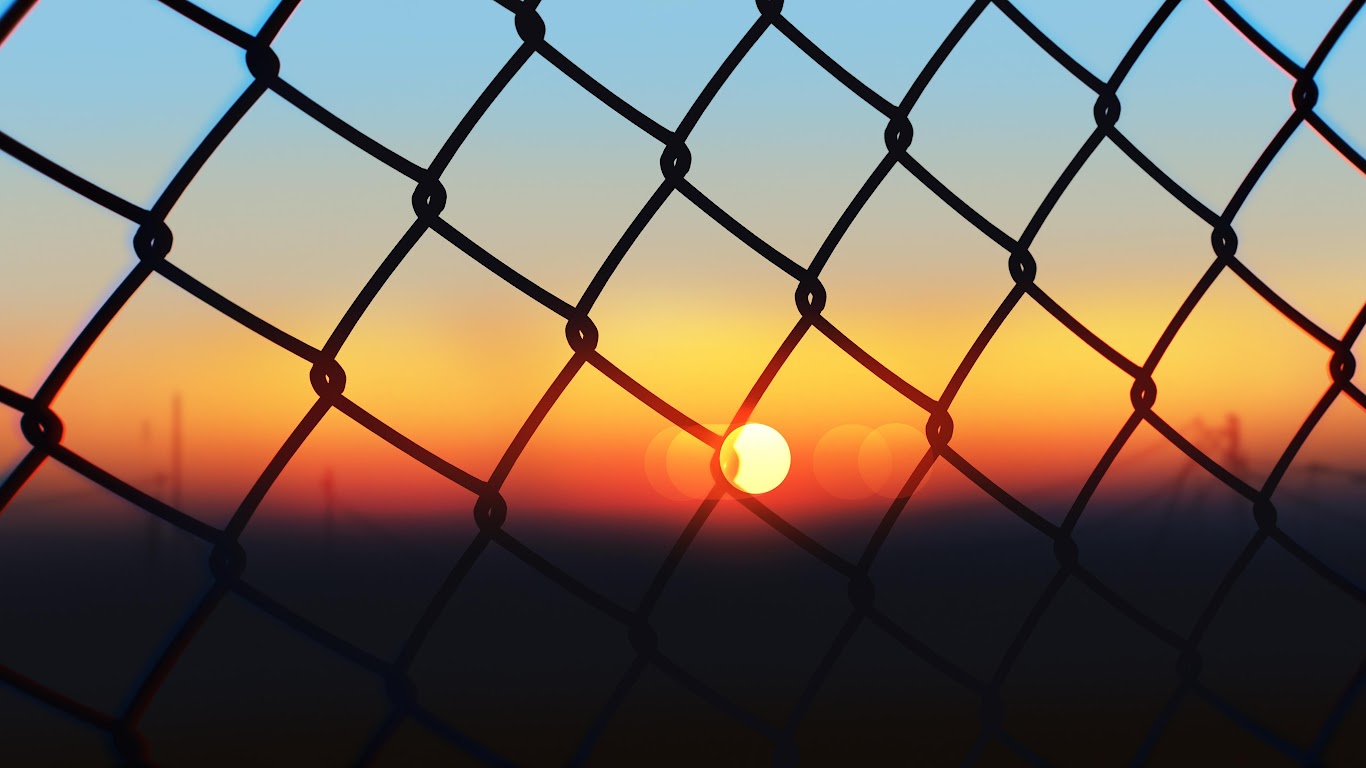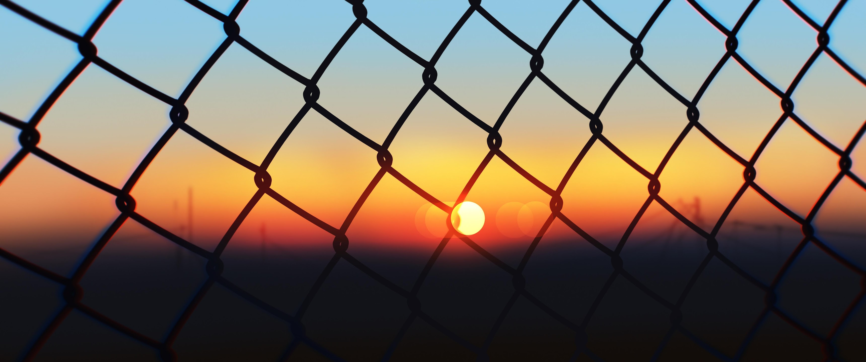 Sunset Through Chain Link Fence 4K Ultrawide Desktop Wallpaper