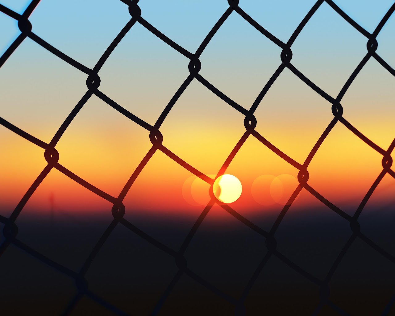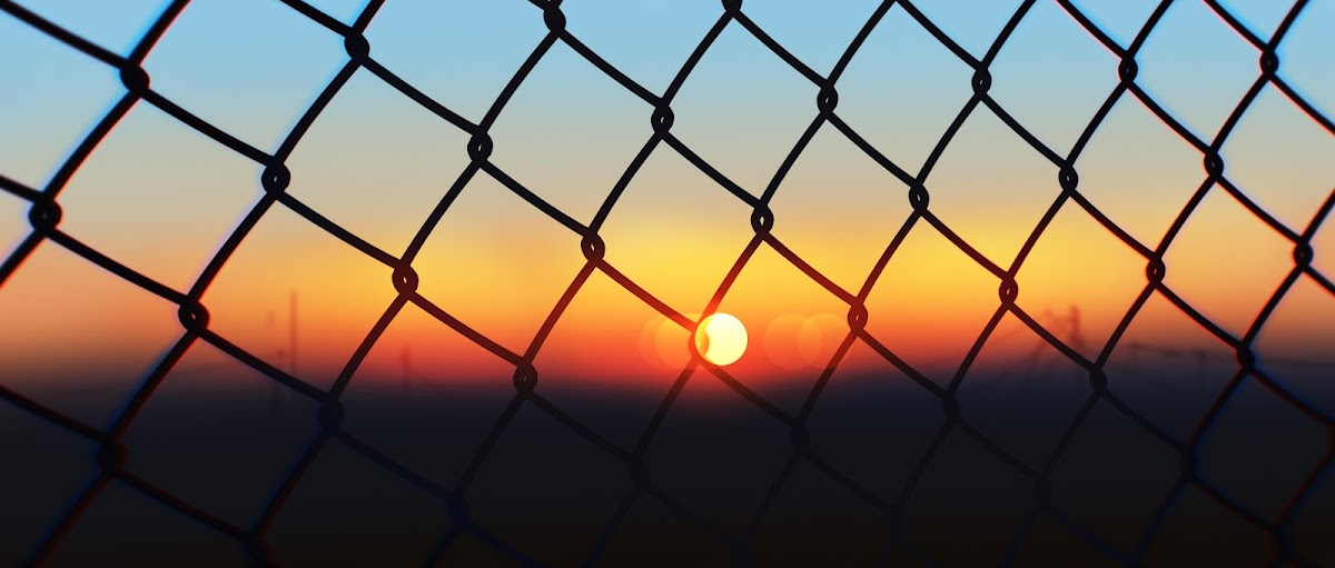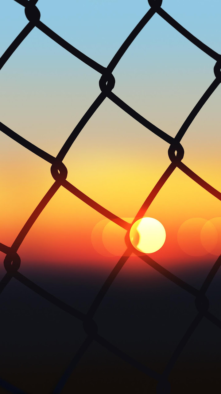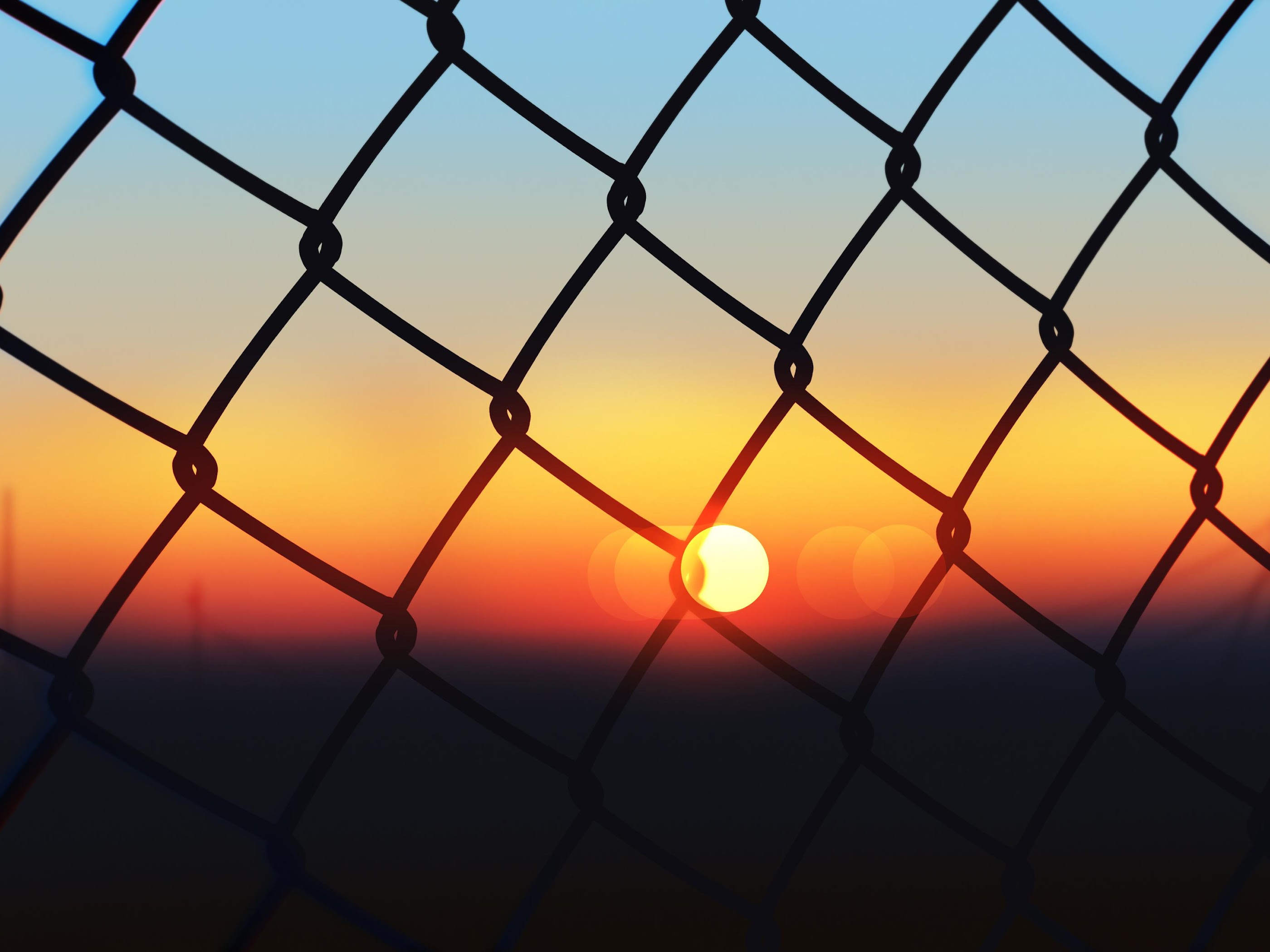 Sunset Through Chain Link Fence 4K Ultrawide Desktop Wallpaper