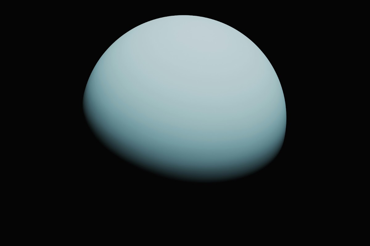The planet Uranus appears as a smooth pale blue sphere floating in the deep black void of outer space with soft light hitting one side.