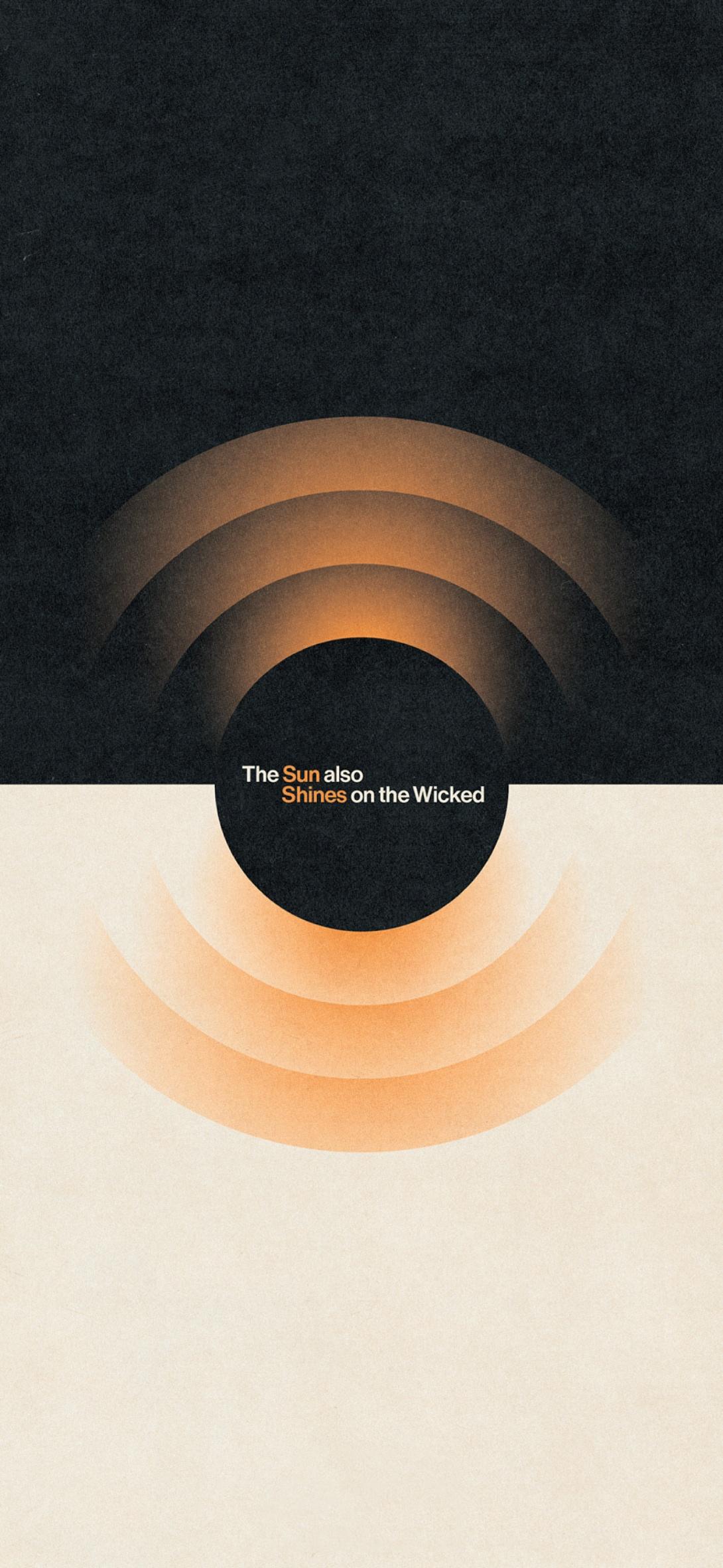 The Sun Shines On The Wicked Full HD iPhone Wallpaper An abstract graphic design shows the quote "The Sun also Shines on the Wicked" split across dark and light sections with radiating orange rings. tg468 286.58 KB 1090x2360 Download original File Size: Dimensions: Resolution: Full HD Format: Mobile ID: Abstract Duality Orange Orange Black Quote Art Retro Minimal Typography