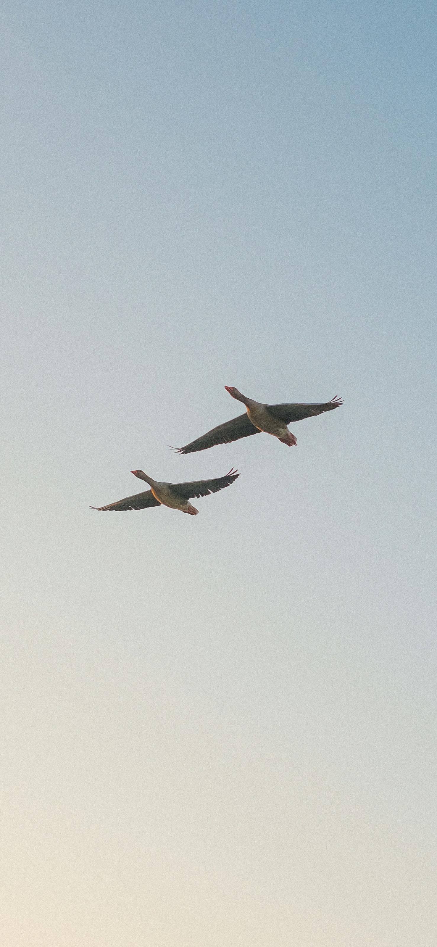 Two Wild Geese In Flight 2K iPhone Wallpaper Two wild geese fly together across a clear light blue sky with their wings spread wide showing a sense of freedom and calm nature. cr187 584.60 KB 1477x3200 Download original File Size: Dimensions: Resolution: 2K Format: Mobile ID: Birds Blue Flight Geese Nature Sky Wildlife