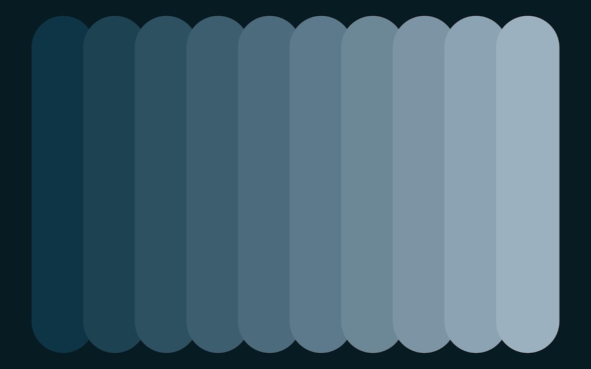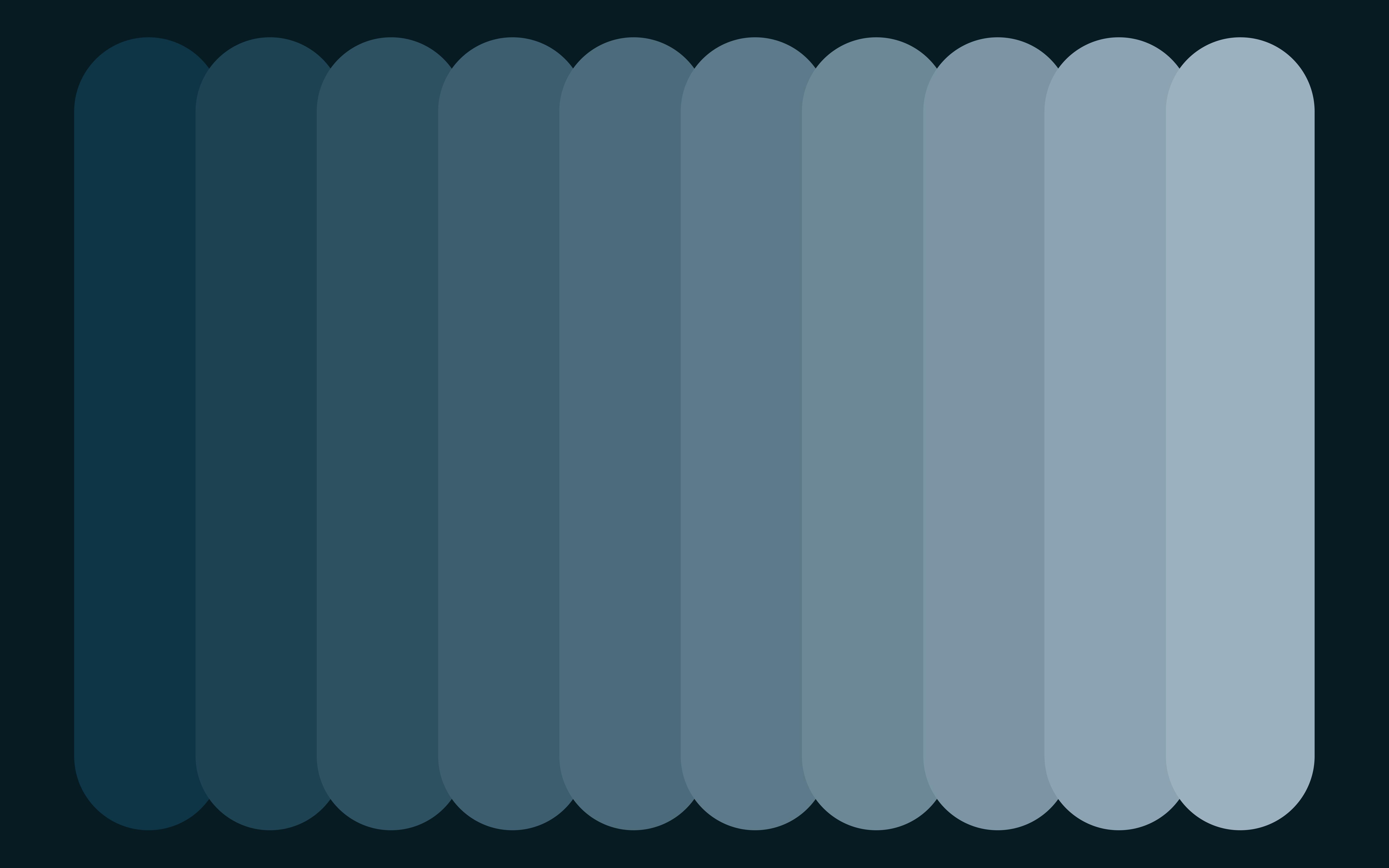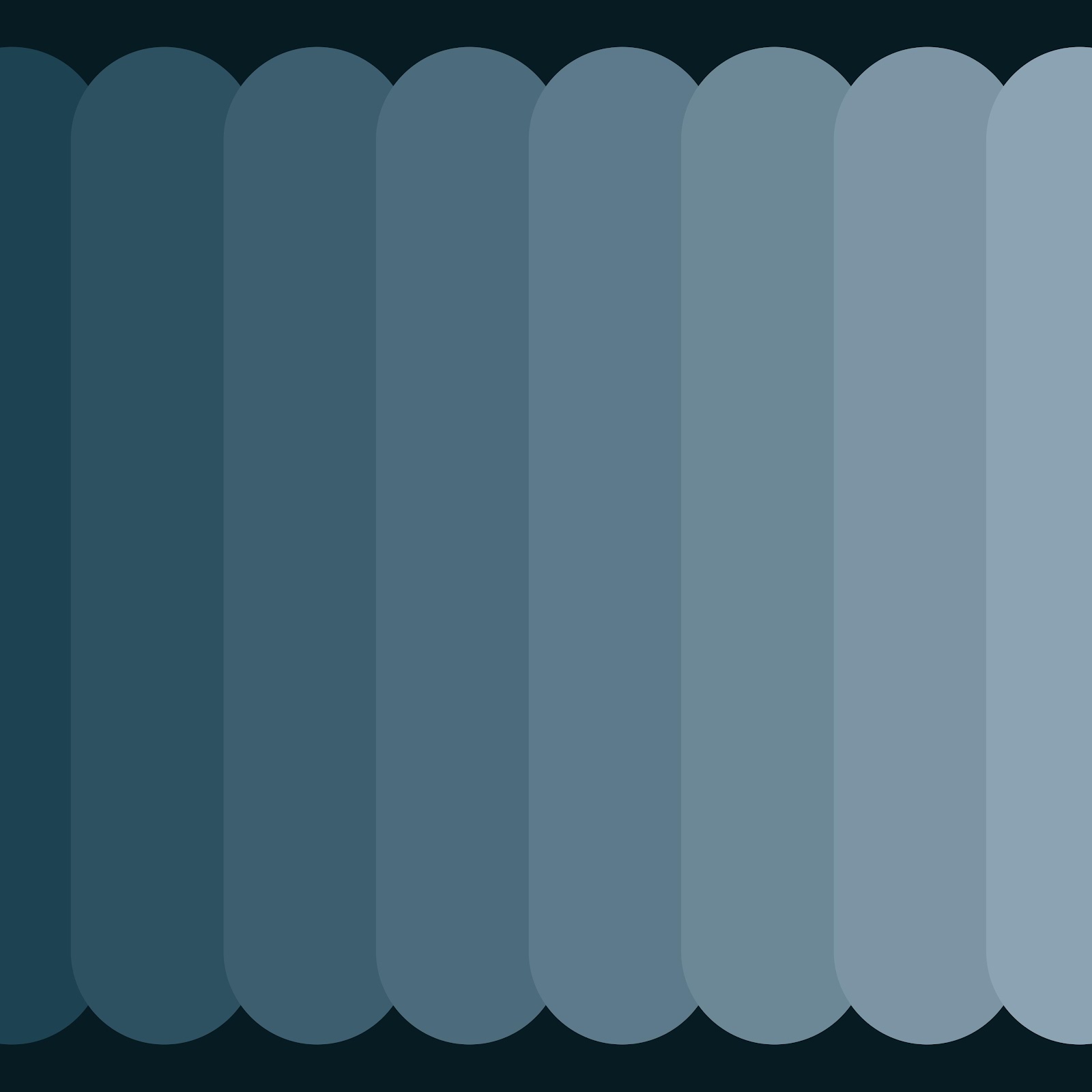 A row of vertical, rounded shapes shows a cool blue color gradient with a dark, subtle background.