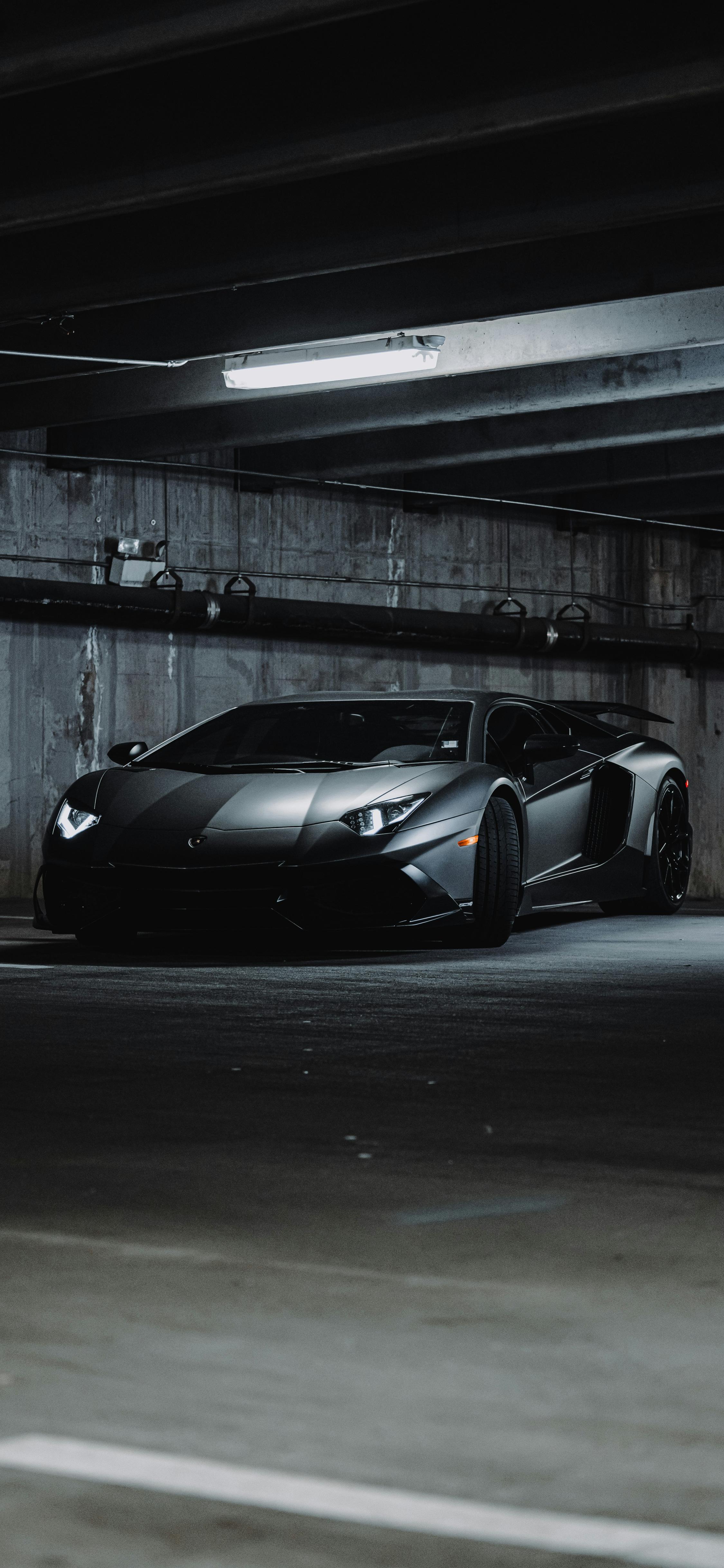 Lamborghini Aventador In Dark Garage - Car Photography 4K iPhone Wallpaper (2250x4874)