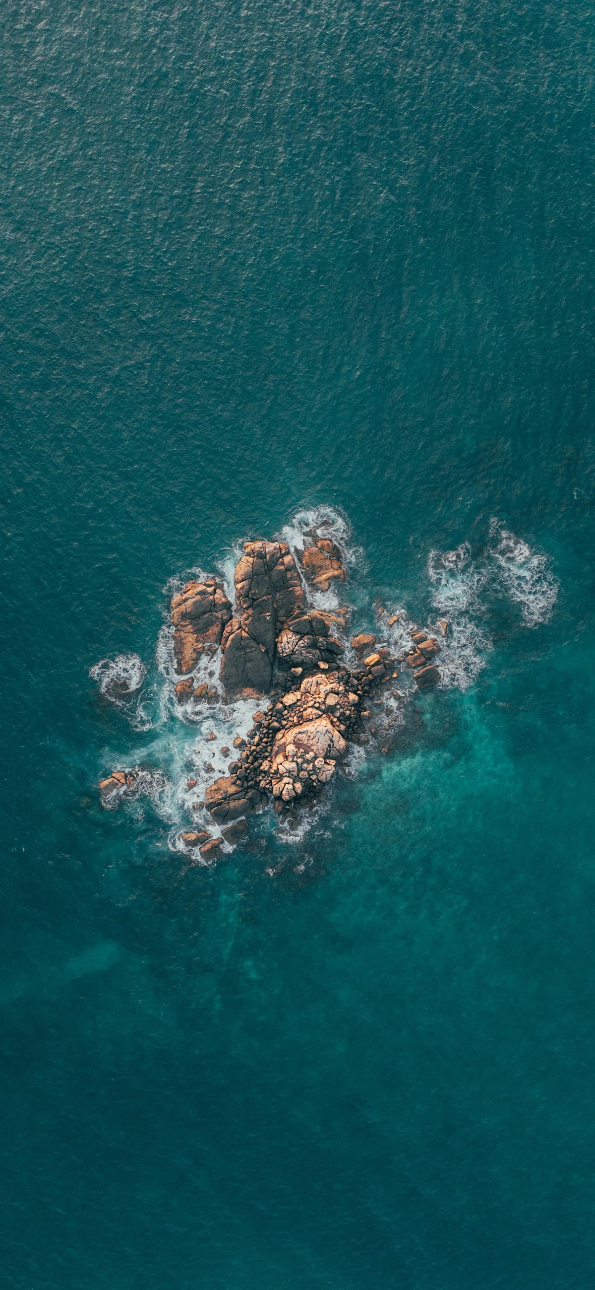 Rocky Island In Deep Blue Sea - Aerial Nature Photography 2K iPhone Wallpaper (1860x4029)